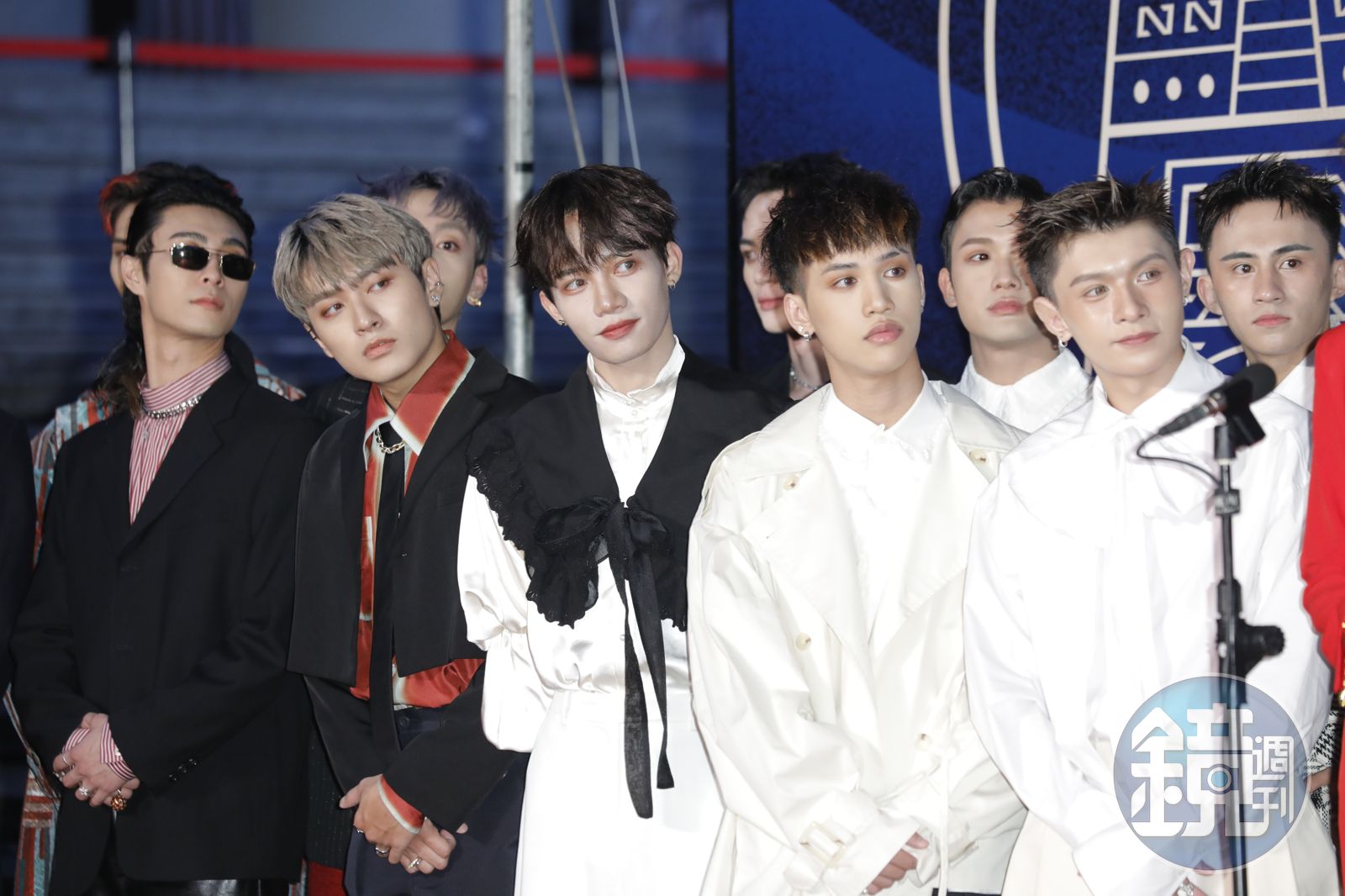 去年掀起選秀男團熱潮的《原子少年》,這次入圍最佳綜藝節目獎,主持人木木和製作人謝皓倫(Allen)帶著製作團隊和出道男團FEniX、VERA、呂植宇、唐立杰、劉新民、陳水豐、峻瑋代表踏上紅毯,陣仗相當壯觀。