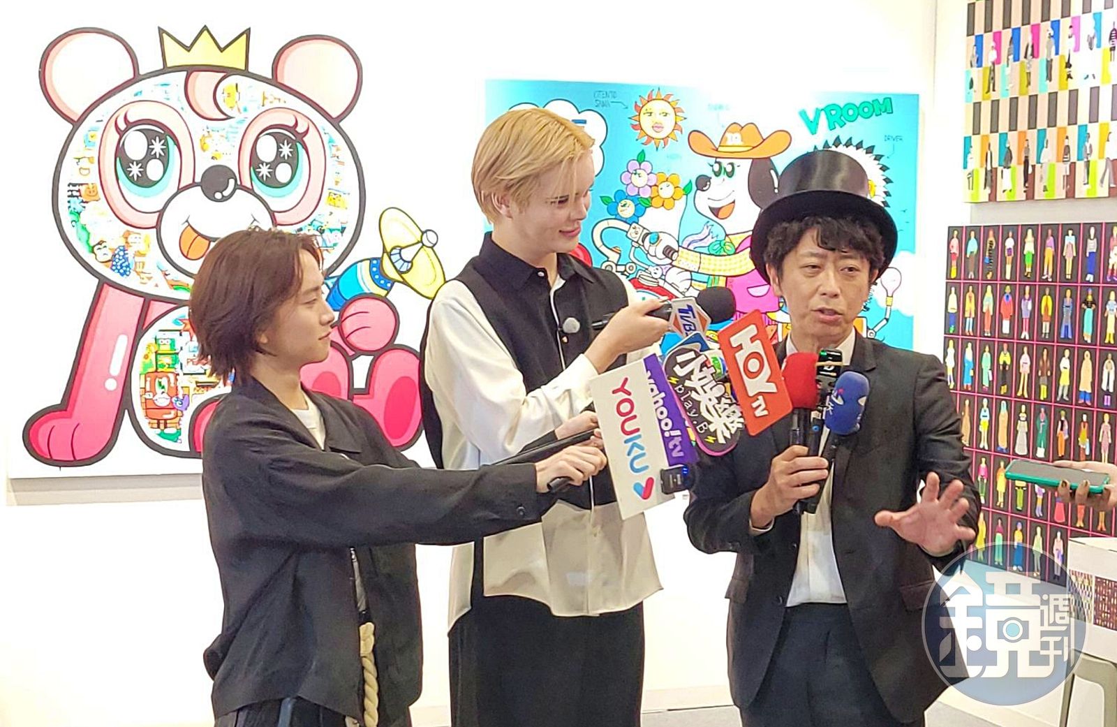 提及來台灣出外景節目錄影的感覺?板垣李光人表示:「感覺這裡(世貿)場地好大,加上自己很喜歡畫圖、也喜歡美的東西,希望等能趁空檔好好地逛一下。至於Matt則表示:「因為我在日本沒有機會去參觀美術館或看展,但我本身就是個藝術品,因為我每天都把自己當作畫布,先把臉塗白,化妝當成畫圖一樣認真,花很多間著墨研究。」話鋒一轉,幽默的他笑說:「我平常在日本化妝要三小時,但我今天只有不到一小時可以『作畫』,大家覺得如何呢?因為我覺得我這個作品也是藝術家的表現。」結果在場的媒體、民眾都對著他大喊:「很美!」讓Matt開心不已!」