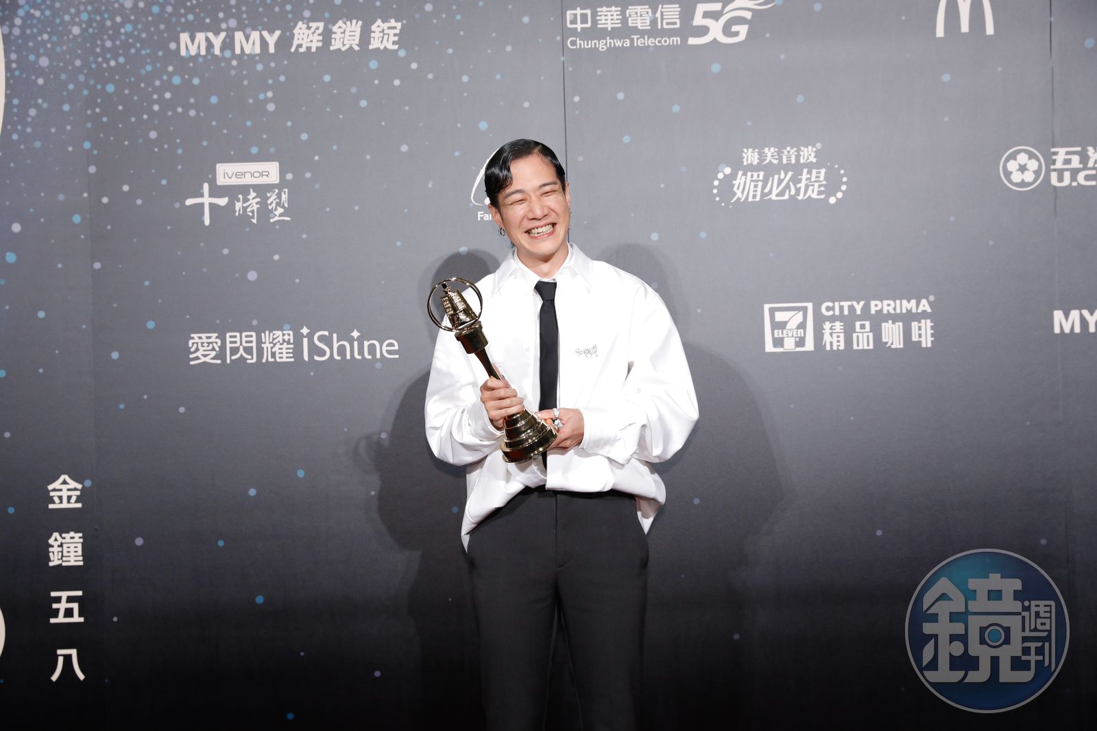 而他的石化狀態從台上維持到台下,在後台發表得獎感言時,勉強才說出心情,他透露因為《台灣犯罪故事》前面都槓龜,所以自己其實有點沮喪,已經開始放空了。得獎後還是不敢相信,甚至覺得可能血壓飆高導致頭暈,「一路上可以遇到這麼多給我機會的單位和人,我覺得我真的很幸運。」他還特地謝謝自己的髮型師,因為他在釜山得獎時,也是同一個髮型。