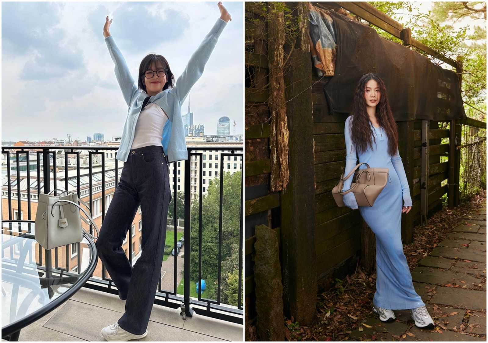 FENDI品牌形象大使安兪真(左)以俐落的白色背心、灰色直筒單寧長褲外搭淡藍色針織衫,休閒look下即是First1運動鞋;曾之喬(右)則的淺藍色貼身長洋裝配上長捲髮非常女神風,腳下的First1則拉近了與粉絲的距離。。(FENDI提供)發布時間:2023.10.27 13:03 臺北時間