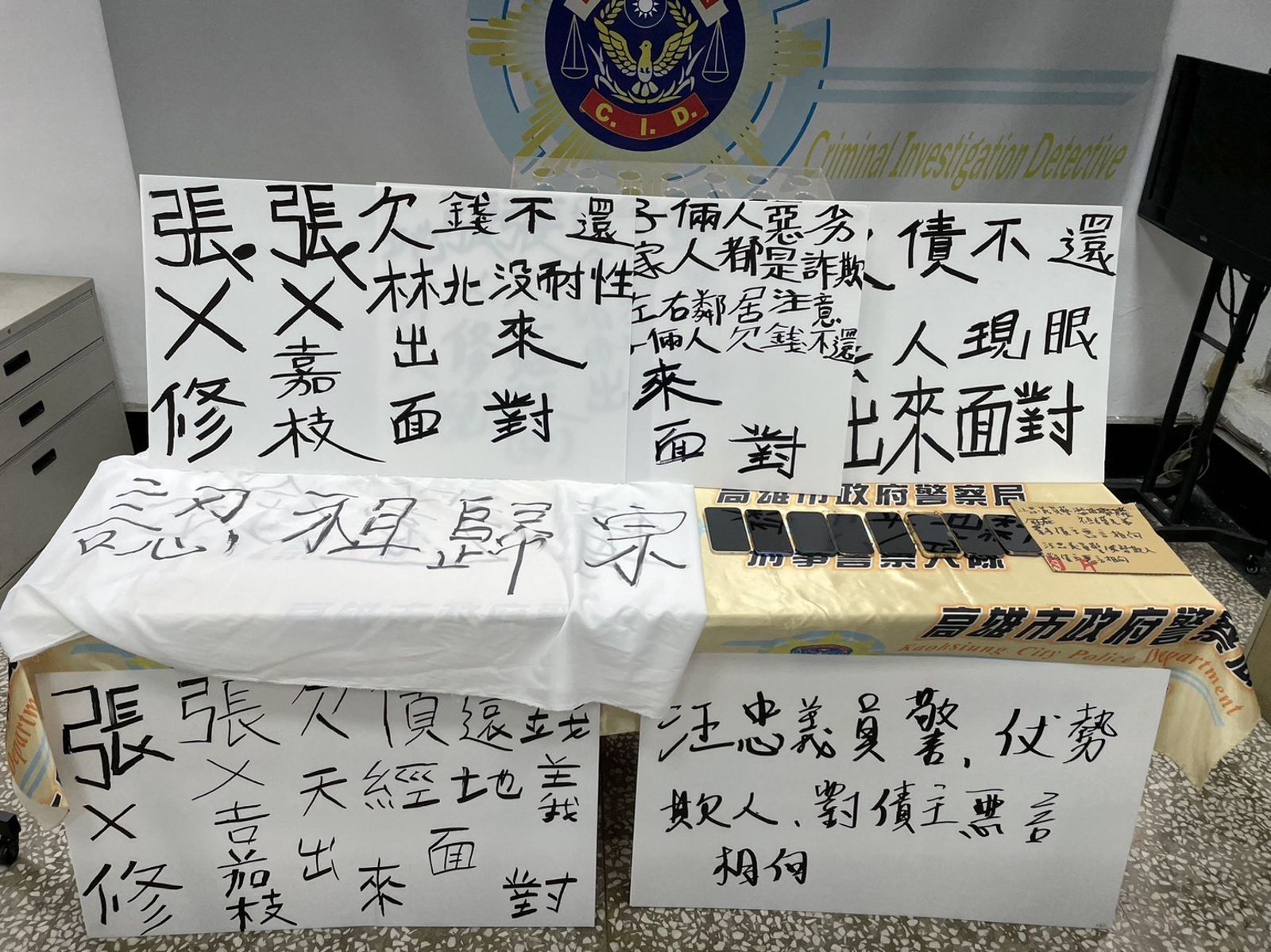 高雄市刑大偵八隊、三民二警分局及台中市警第四分局成立專案小組,追查何、沈等人涉案情節,也發現沈姓男子涉暴力討債,在目前警政署掃黑專案中,將何、沈列掃黑對象。25日在高雄、台中等地,拘捕何、沈等10名涉案男女,其中也包括何女的女兒與沈男的兒子,查扣討債、抗議字牌和布條,依恐嚇、妨害秩序、毀損和強制罪嫌,移送雄檢偵辦。雄檢聲押何、沈2人獲准,其餘8人分別獲交保或請回。