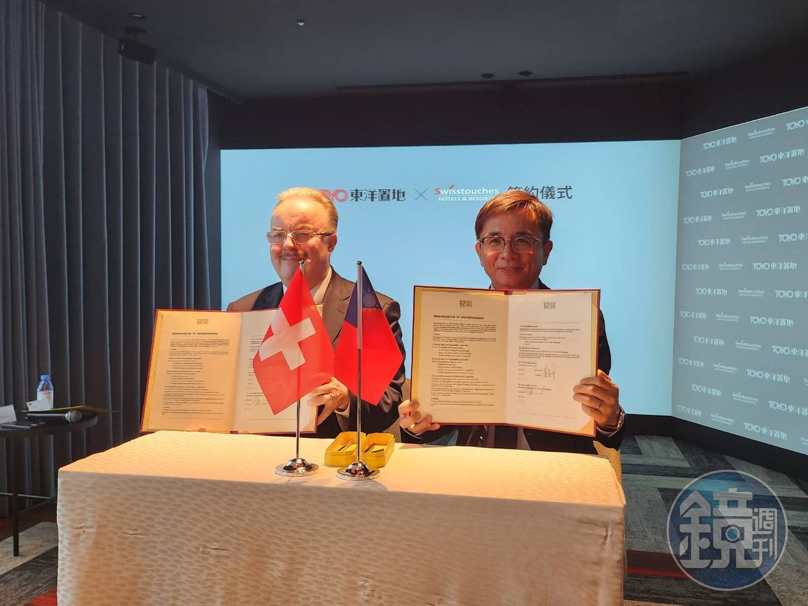 東洋置地與瑞士瑞斯麗酒店管理品牌Swisstouches Living,在東洋置地董事長李宜晉與瑞士瑞斯麗Swisstouches Living執行長MR.LARMOUR代表下,雙方於今(31)日舉行簽約儀式。