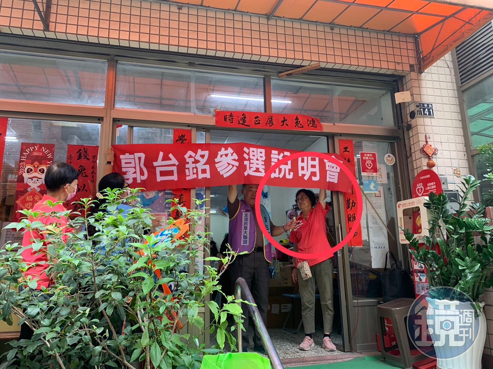 國民黨台中立委參選人羅廷瑋母親(紅圈)被目擊出現郭台銘聯署站。(讀者提供)發布時間:2023.10.31 14:46 臺北時間