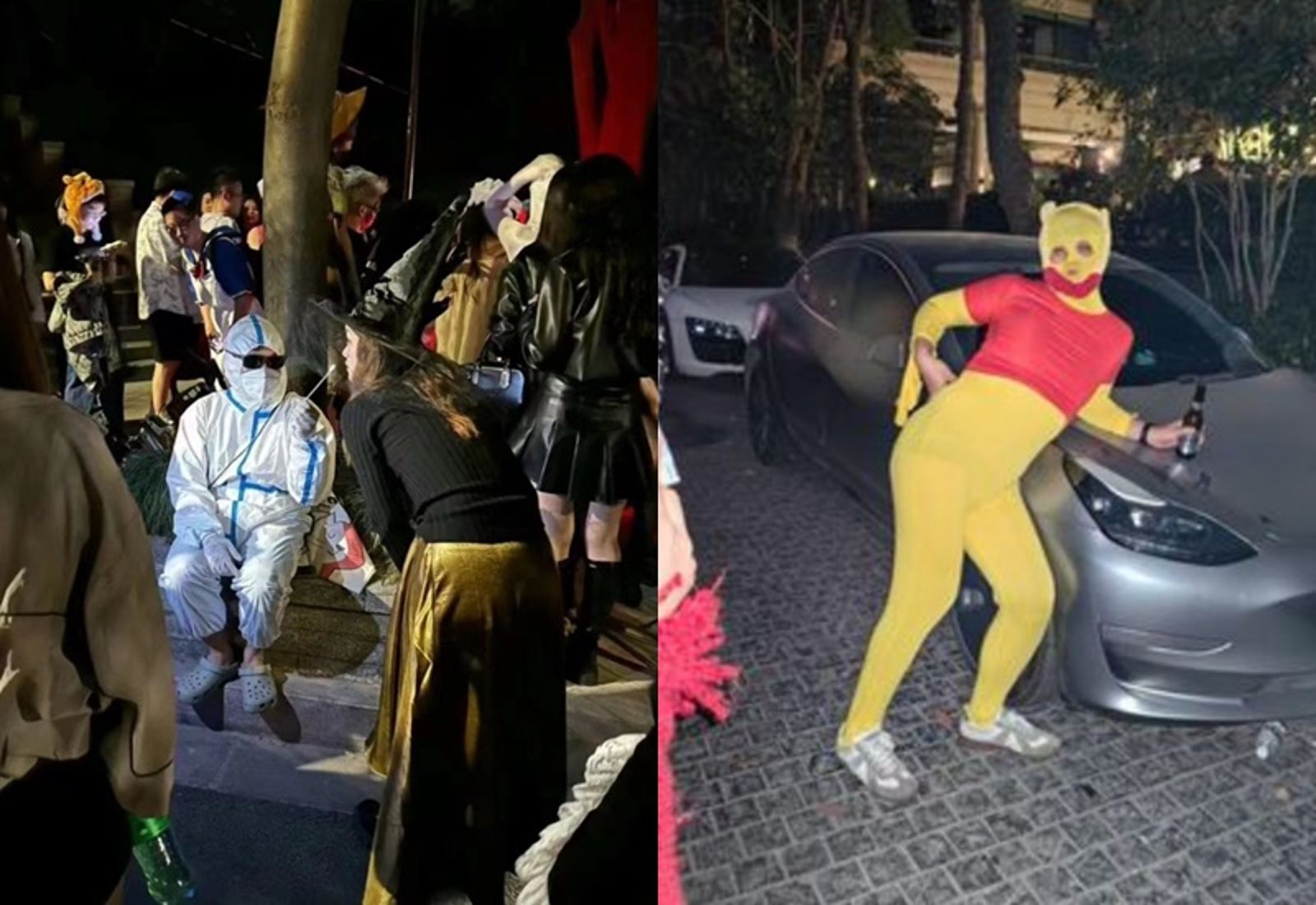 不過迎來疫情後第一個萬聖節,中國年輕人今年可以說是「豁出去了」,X平台用戶「李老師不是你老師」就發出一系列上海萬聖節照片,有人扮成「上證指數」、左手還拿著一把韭菜,還有人扮成防疫「大白」幫人隔空快篩,甚至還有「勇者」穿著「維尼裝」出沒,堪稱史上最狂!