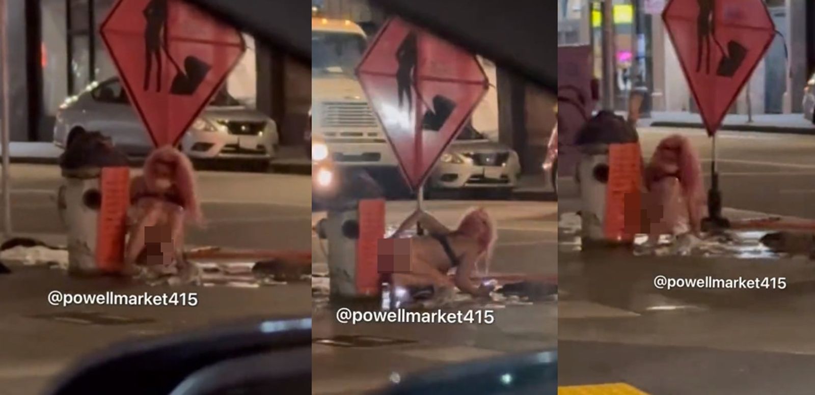 有名駕駛目睹這個震撼場面,不禁感嘆「我車上還有小孩,全部都不到7歲。很不幸他們得目睹這場在舊金山市中心街頭的悲劇」,甚至在他們離開時,還看到裸女直接雙腿大開,讓消防栓的水柱沖洗私密處,讓人不忍直視。