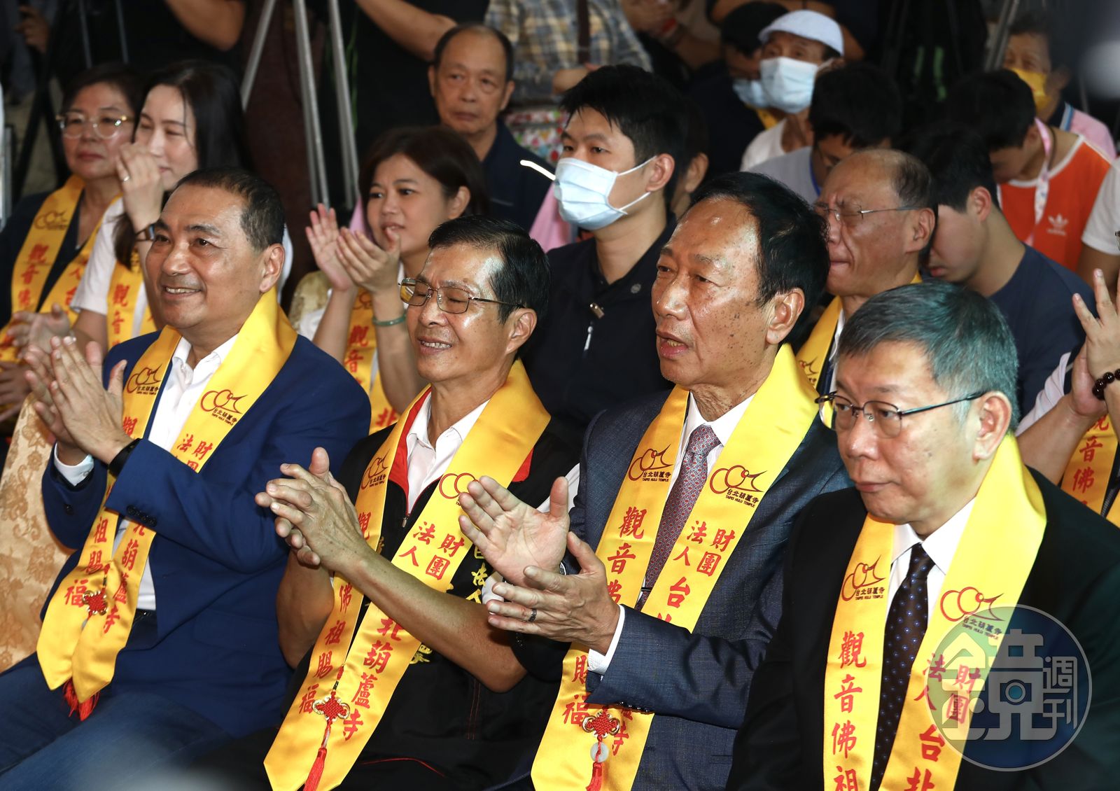 有意角逐2024的柯文哲、侯友宜,近日藍白合見面商談結果頻頻觸礁,今(2日)上午還和先前從國民黨分裂出來獨立連署參選的郭台銘,3人一同出席葫蘆寺遶境起駕祈福大典,現場互動備受關注,傳出3人的座位安排也讓廟方頗有壓力。