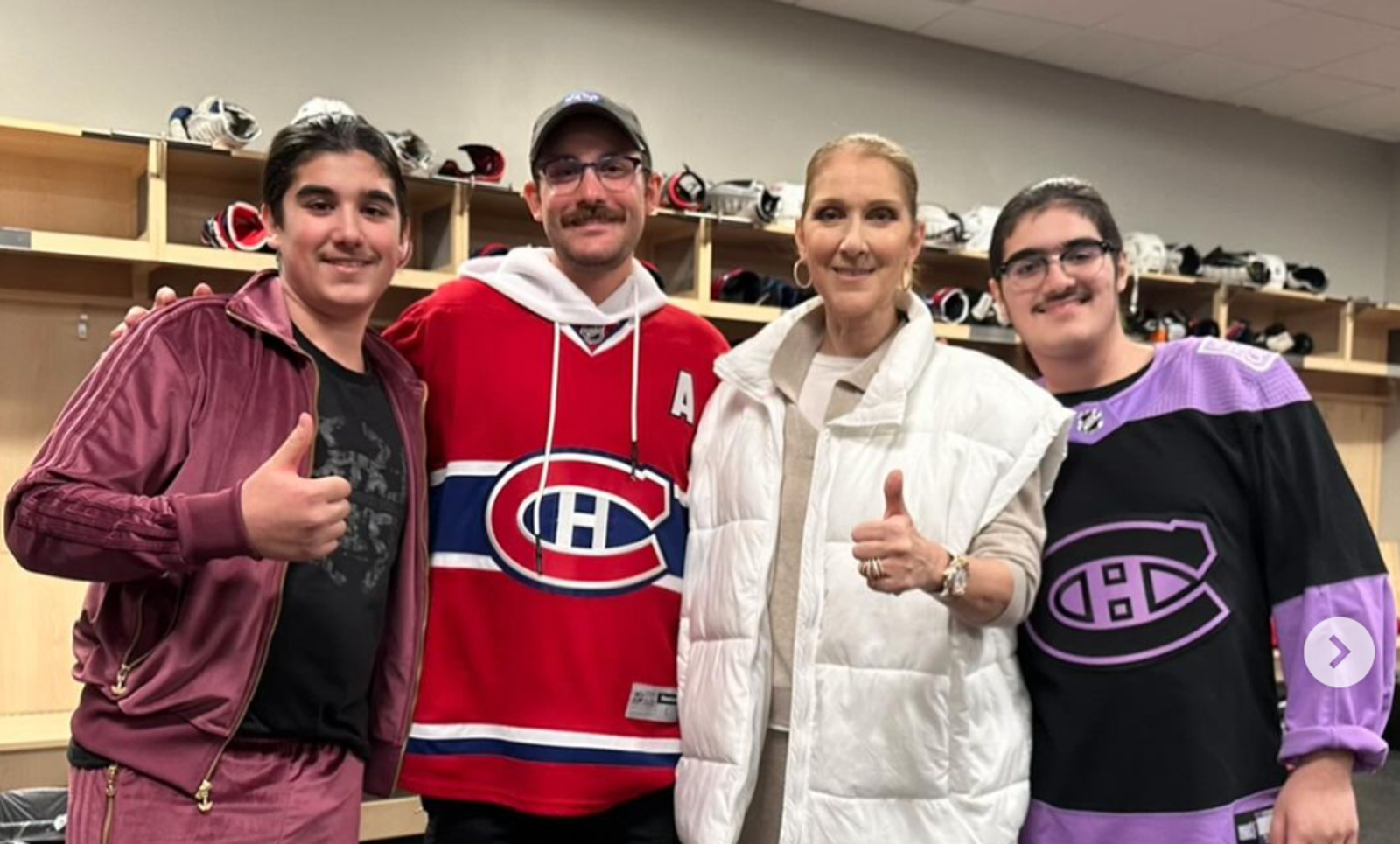 席琳狄翁跟22歲的大兒子雷內、13歲的雙胞胎,一起到了賭城的比賽現場,球賽結束後也到休息室跟球隊成員見面。她在Instagram上提到,「我跟兒子一起到冰上曲棍球球隊的休息室探班,他們打得很出色,我們也度過很歡樂的時光。感謝各位在賽後還抽空與我們見面,這對我們是難以忘懷的回憶,祝福大家今年球季勝利。」球隊的公關代表也秀出了跟席琳狄翁的合照,感謝她的抽空來訪,「我們全隊也很開心能跟你們一家人見面。」