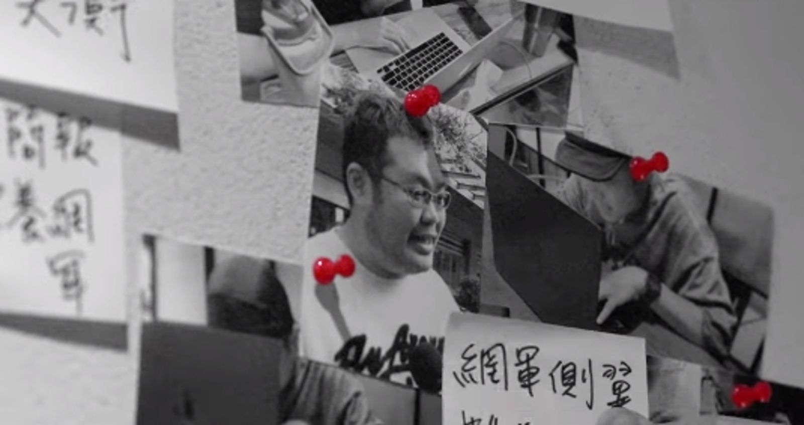 侯友宜的新競選影片「現形」中,使用警察在民眾心目中的查案手法,將執政黨及相關爭議人事物用紅線拉成蒐證網絡,其中一幕有網紅四叉貓的照片,左、下方皆有側翼網軍捏造假消息等字樣。