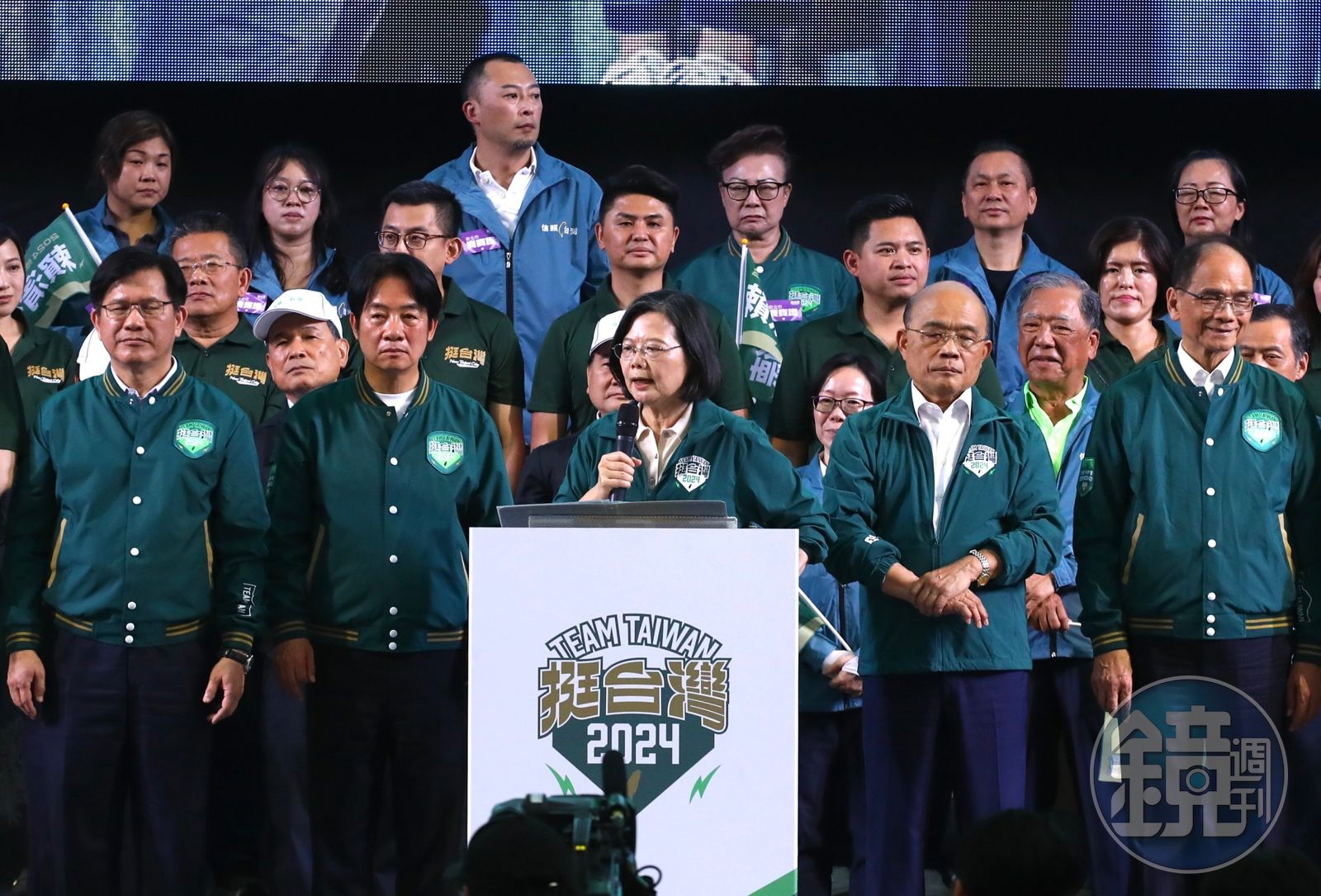 蔡英文說,科技發展、疫病威脅、氣候變遷等,將考驗每個國家與人類,面對下一個挑戰,台灣需要有經驗的團隊帶領民眾前進,賴清德與團隊將勇敢堅定承擔責任,團結民眾、保衛國家、照顧民眾、確保有尊嚴的和平,讓台灣在世界競爭中維持關鍵影響力。