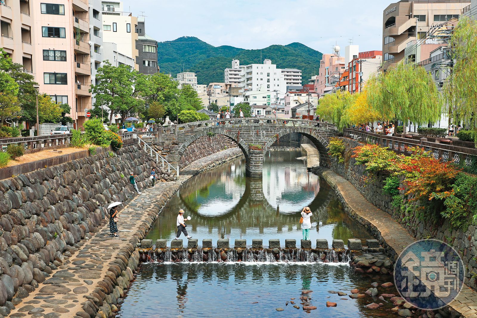 眼鏡橋是許多遊客必訪的打卡景點,石橋旁還有一條古色古香、擁有四百年歷史的中通商店街,這條步行區聚集許多雜貨、小吃、伴手禮等趣味小店,很適合花點時間走逛。