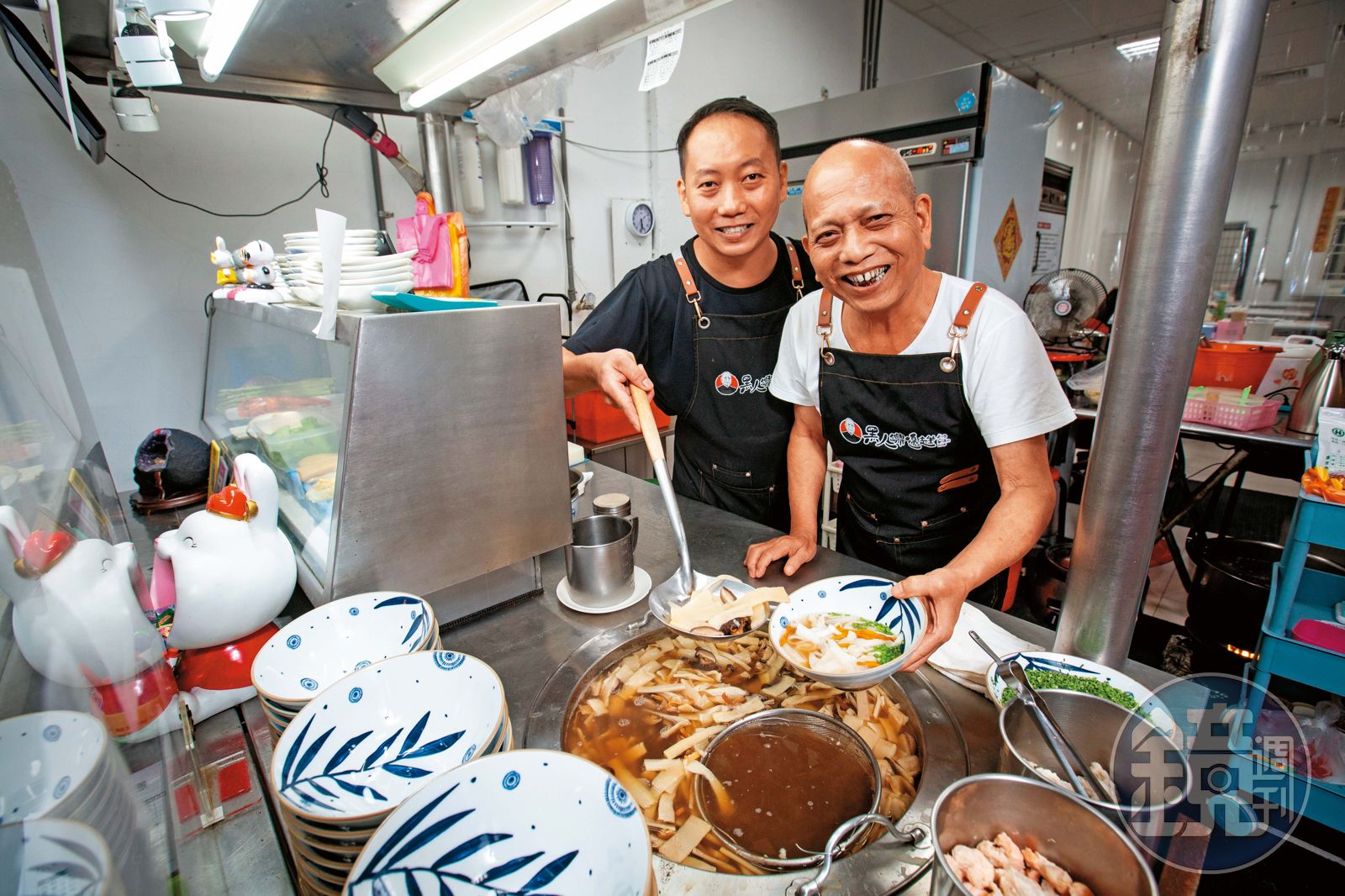 那一次比賽讓黑人鐤邊趖翻紅,評審裡有位美食部落客,吃了大為驚豔,後來到店多次,寫了文章,才讓更多人知道桃園也有鼎邊趖。生意轉好,唐茂檳與妻子每日早起備料,去年卻發生意外,他處理白蝦時被蝦尾刺到,感染海洋弧菌,「脊椎被吃掉一整節,痛到下床、坐輪椅要花20分鐘。」醫生預估半年才能復原,唐茂檳心繫老店,硬是逼自己一個多月就重新站起來。大病初癒不到半年,他再次挑戰父親原則,決定搬進店面。「爸爸被房東弄過很多次,會驚,但攤位的遮雨棚有高低差,下雨天客人一邊撐傘一邊喝湯。」