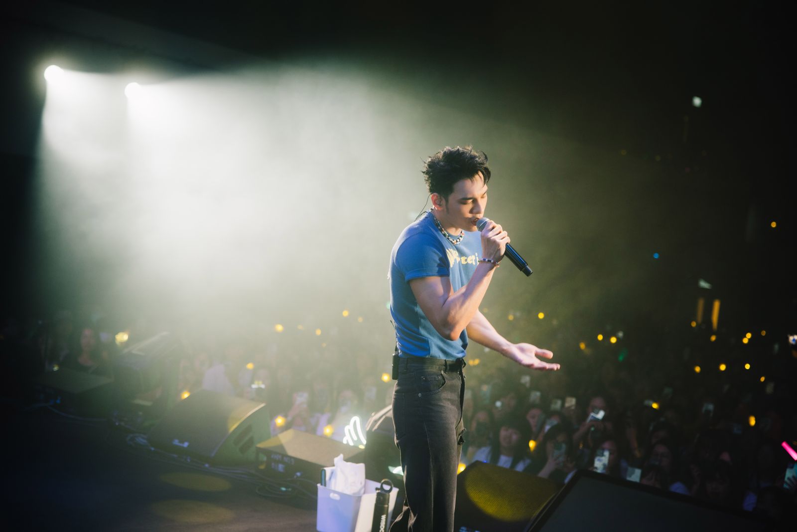 黃偉晉以迷人又溫暖的嗓音唱著〈日安日安〉揭開序幕,用一口流利的粵語向全場粉絲問好:「香港的朋友,你們吃飯沒了啊?」震耳欲聾的尖叫聲響徹整個場館,隨後接連帶來〈房間裡的雲〉、〈好累〉等一連串歌曲,吸引粉絲一起大聲合唱,沒想到演唱會第一天當他唱完〈還不想睡〉時,台上就發生緊急狀況。
