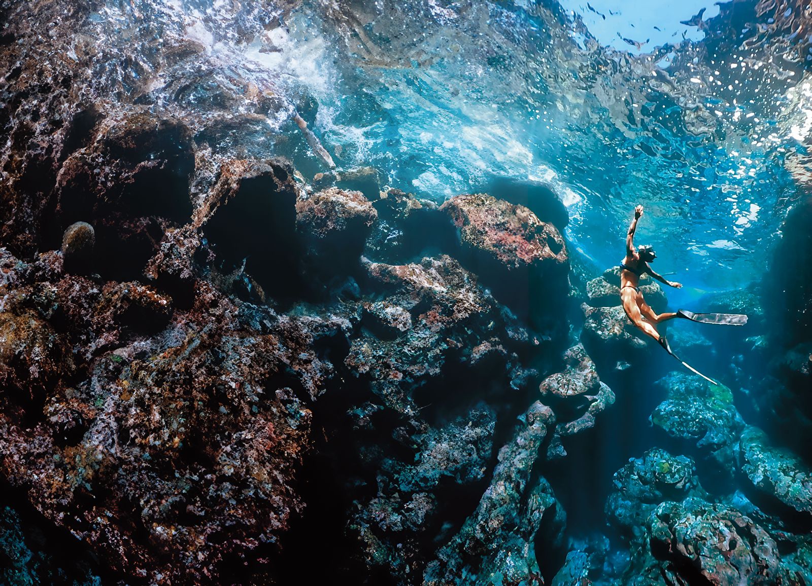 心情差的時候,唯一能讓我好過一點的只有潛水。大海的包容力很強,就算我狀態不好,也不會對我比較差。有次跟朋友下海,為了延長閉氣,我咬著呼吸管,趴在水面調整氣息,整整一分鐘,我全心想著放慢呼吸,四周安靜到只聽見心跳聲,朋友問我肩膀怎麼沒亂動?誒,好像是耶!我才意識到自己原來在大海裡這麼放鬆。
