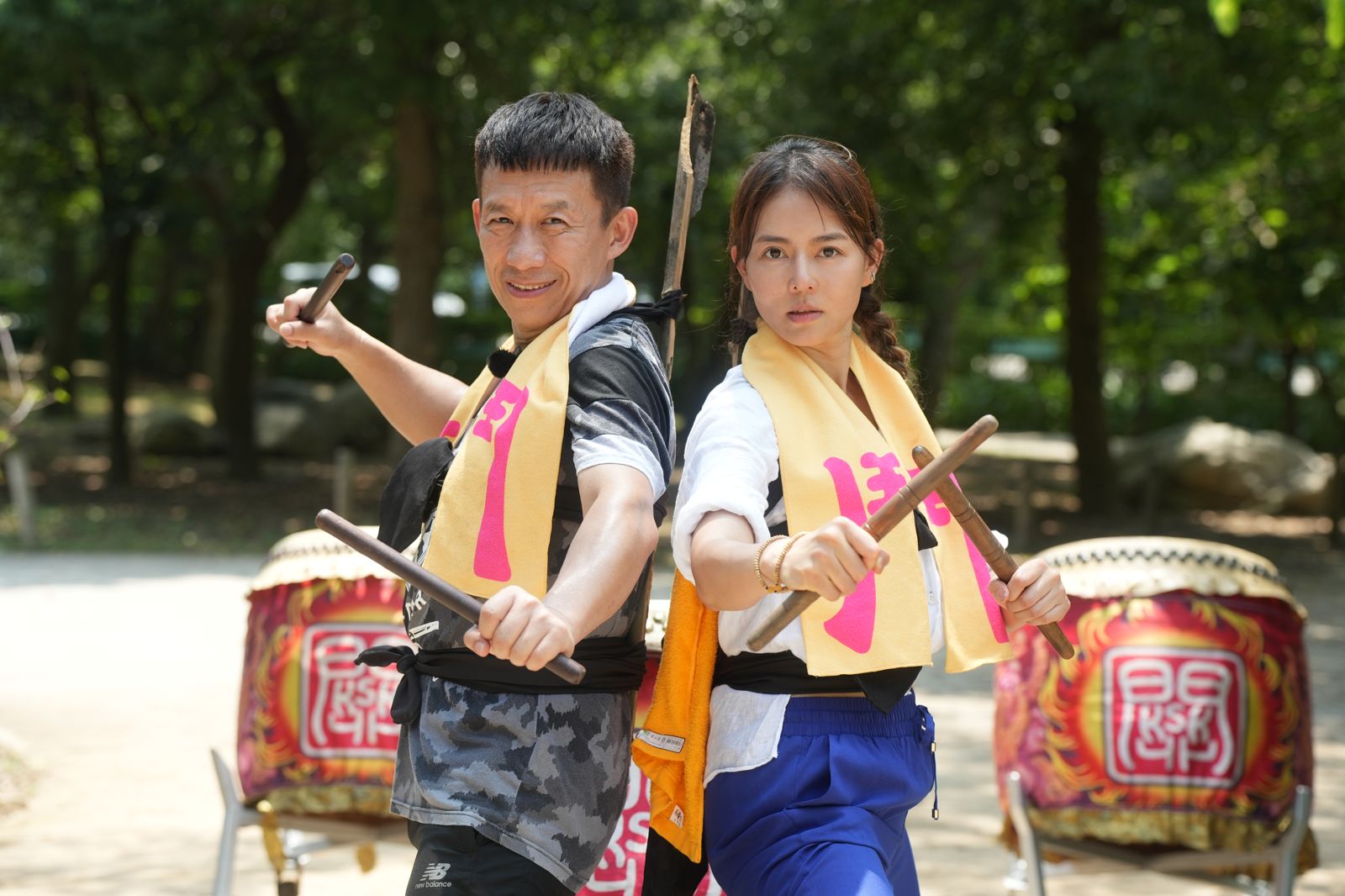接下來「醒獅鼓譜唱譜訓練」更讓郭子乾臉色凝重說:「節目上唱歌要靠人家打節拍,我音癡找不到下歌點」,看著劉香慈快速打出節拍,讓郭子乾更是急出一身汗。看完團員孩子們在擊鼓後,瞬間腳跨過鼓再一個轉身的專業示範後,兩個人傻眼都喊說辦不到,郭子乾更是說我一轉身就不知道天南地北了,頻頻慢很多拍的郭子乾不但擊鼓抓不到點,跨鼓又慢一拍,一個轉身馬步紮不穩,還「獨樹一格」抬腳的奇怪動作,讓教導的郭師傅頻頻搖頭。