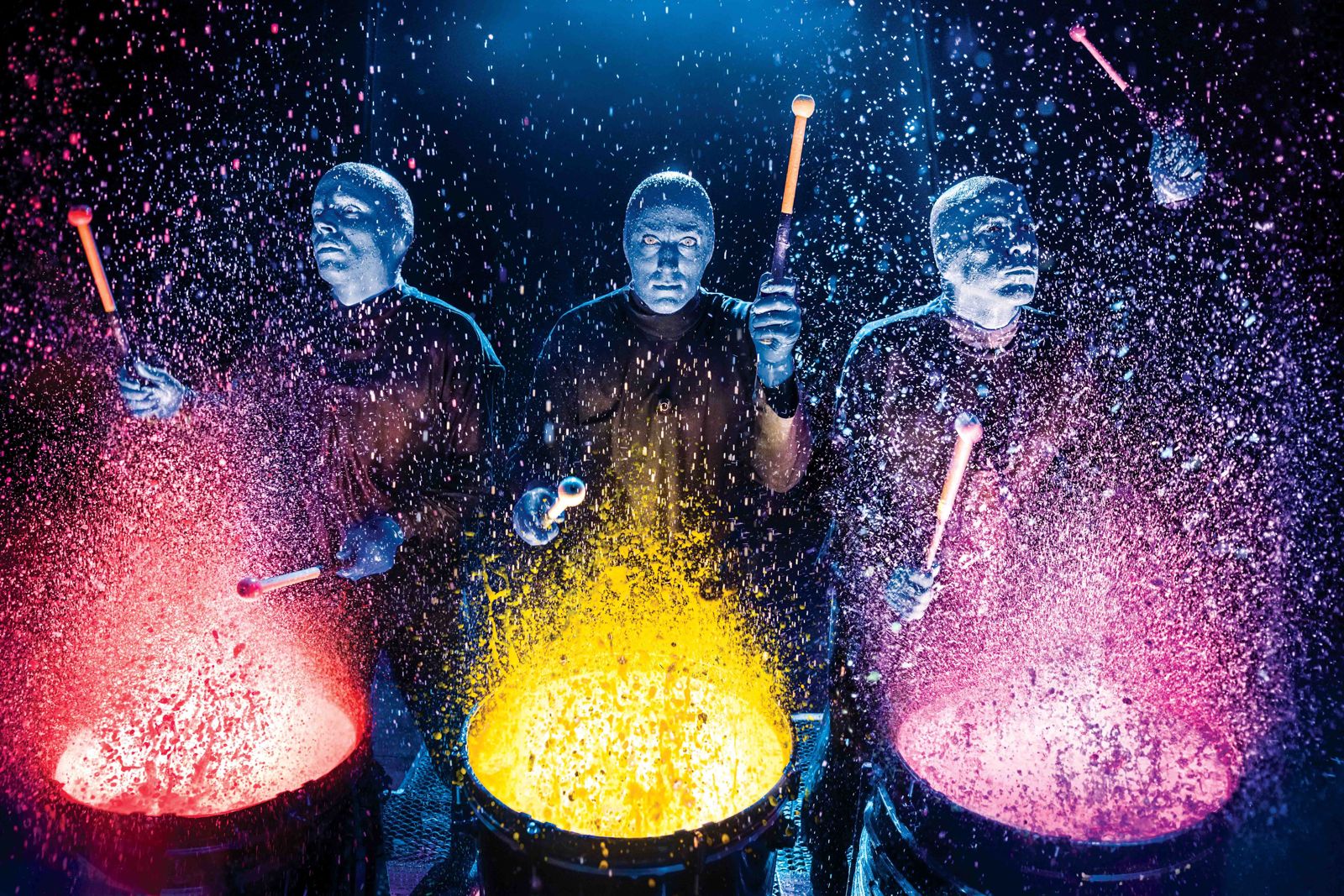 自1991年首次亮相於紐約外百老匯的阿斯提宮劇院(Astor Place Theatre),藍人樂團其無遠弗屆的感染力已擴展至波士頓、芝加哥、拉斯維加斯等其他美國城市,以及柏林等地常駐演出。亦曾多次於北美洲和世界各地巡迴演出,全球觀賞人次超過5千萬名觀眾。藍人樂團獨特的娛樂風格更是吸引聚集各年齡層和文化背景的觀眾。身為流行文化的精神代表,藍人樂團曾多次登上熱門節目,包括《與星共舞》、《今夜秀》、《發展受阻》、《艾倫秀》、《擊敗拉布》(德國)、WOWOW(日本)和《卡爾代羅·杜·胡克秀》(巴西)。此外,藍人樂團亦曾榮譽受邀擔任Intel和TIM巴西的品牌代言人。藍人樂團不斷探索和創新開發也延伸至娛樂行業的其他領域,不僅參與電影和電視配樂,發行出版多張專輯,其中「聲音」(Audio)這張音樂專輯更獲得葛萊美獎提名。