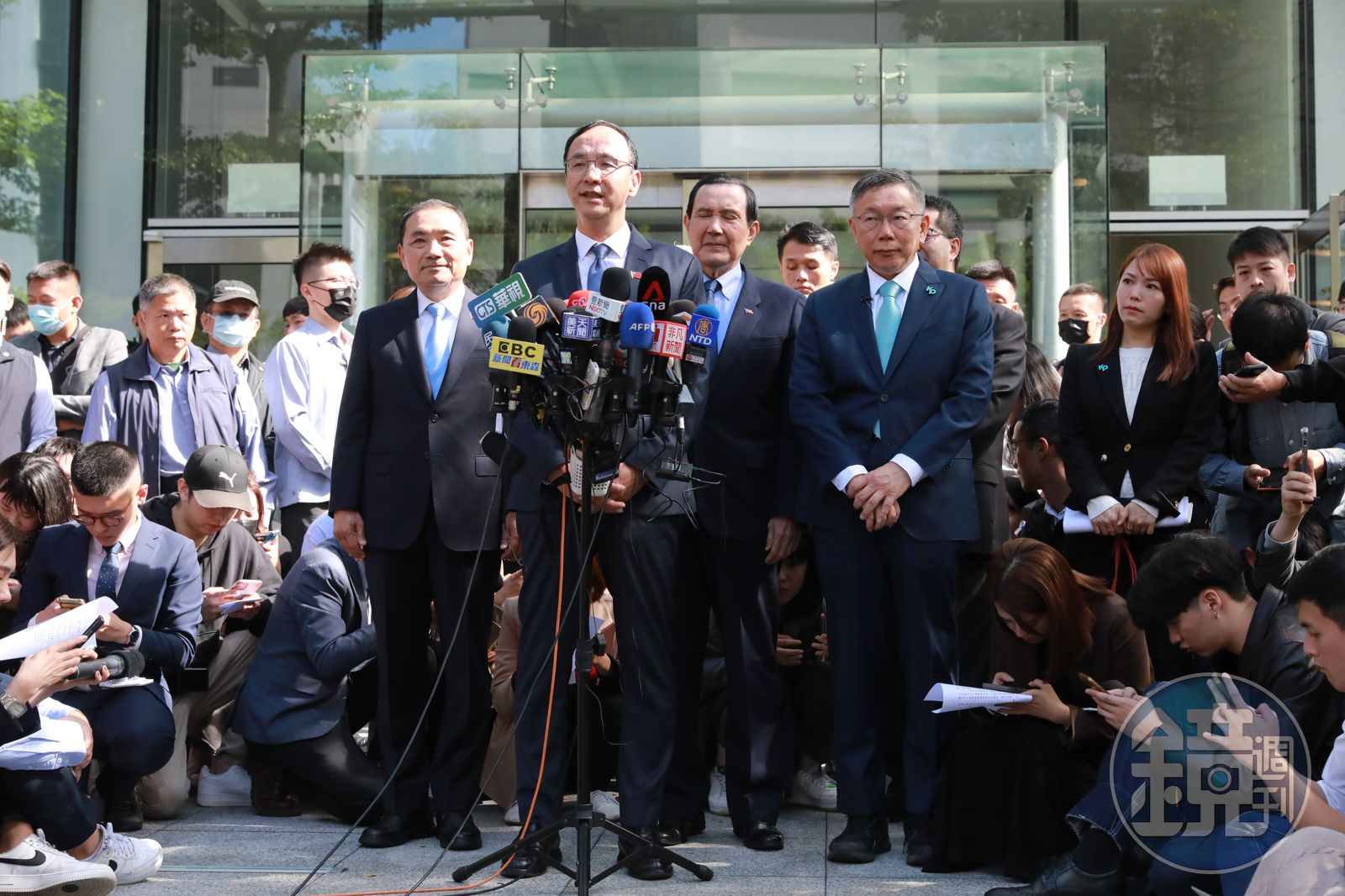 另一方面,本刊也掌握到,在今日上午的會談中,當進入藍白談判深水區時,4方幕僚全被要求離場,最終出爐的藍白共識方案只由柯文哲、國民黨主席朱立倫、國民黨總統參選人侯友宜、馬英九4人敲定。最終方案一出爐,卻與柯營事先沙盤推演的版本有不小落差,讓柯營內部一片錯愕,認為柯「讓太多了」。