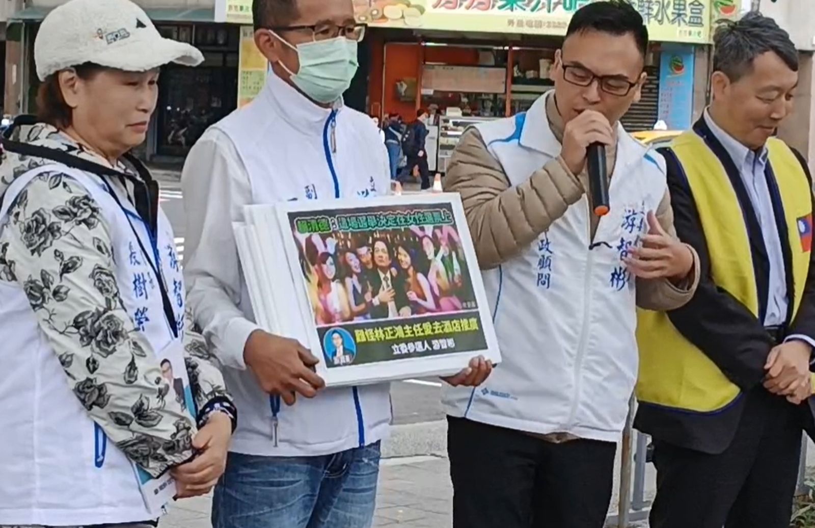 繼上週踢爆民進黨組織推廣部主任林正鴻上酒店激吻陪酒妹後,新黨立委參選人游智彬14日又指控民進黨發言人張志豪喝花酒、對爆乳妹伸鹹豬手,甚至記者會上,出示副總統賴清德被多名女性簇擁的P圖畫面。對此,民進黨今(15日)完成蒐證後對游智彬提告。