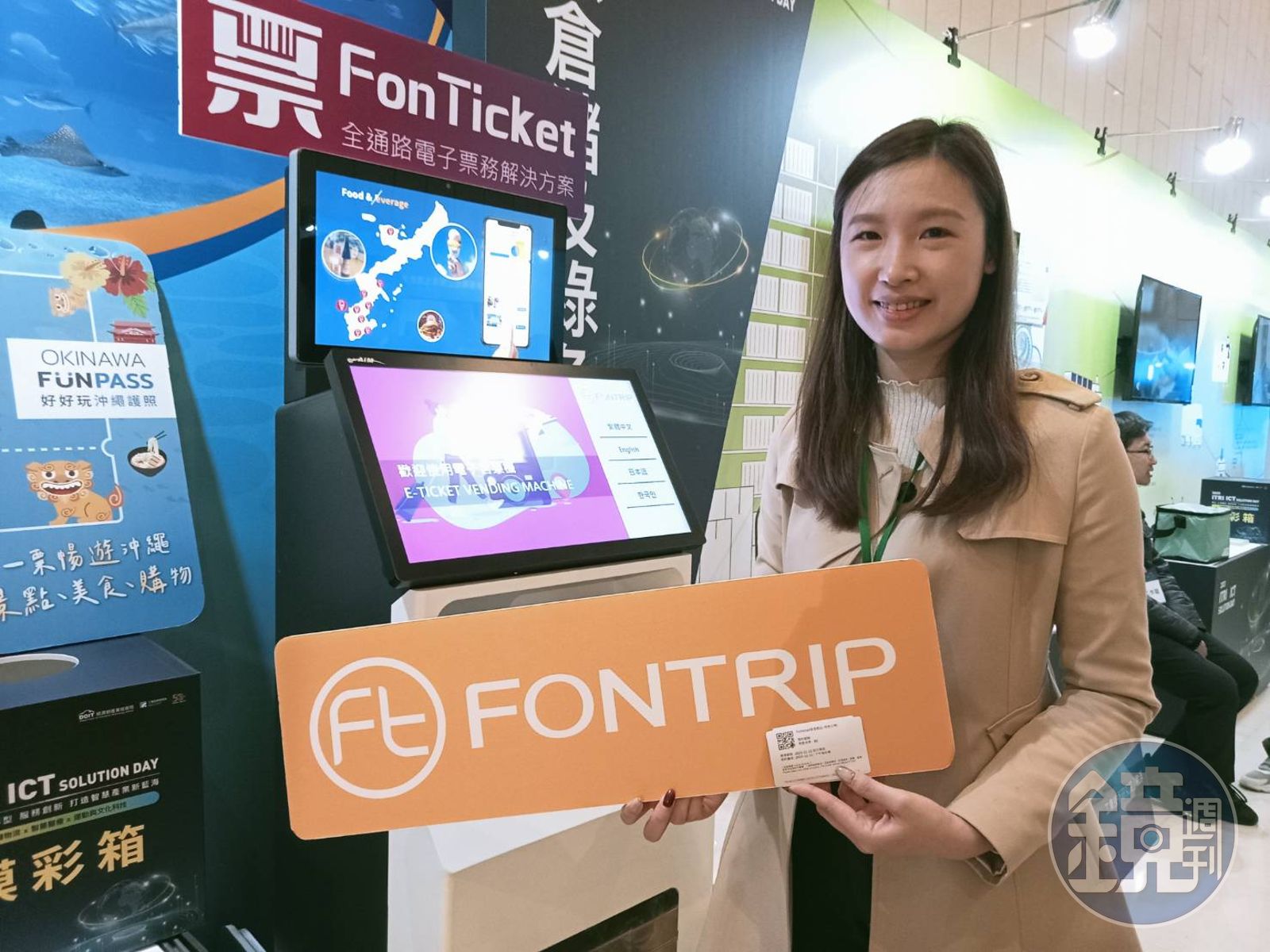 現場上,豐趣也有一台由POS龍頭飛捷科技打造的多語言模式互動式資訊服務系統(Kiosk),陳文雅說明,以故宮為例,疫情後國際遊客大增,使用這樣的機器,方便各國觀光客依語言需要自行購買,拿到電子票證只要掃條碼就能驗票,大大降低人力配置負擔。