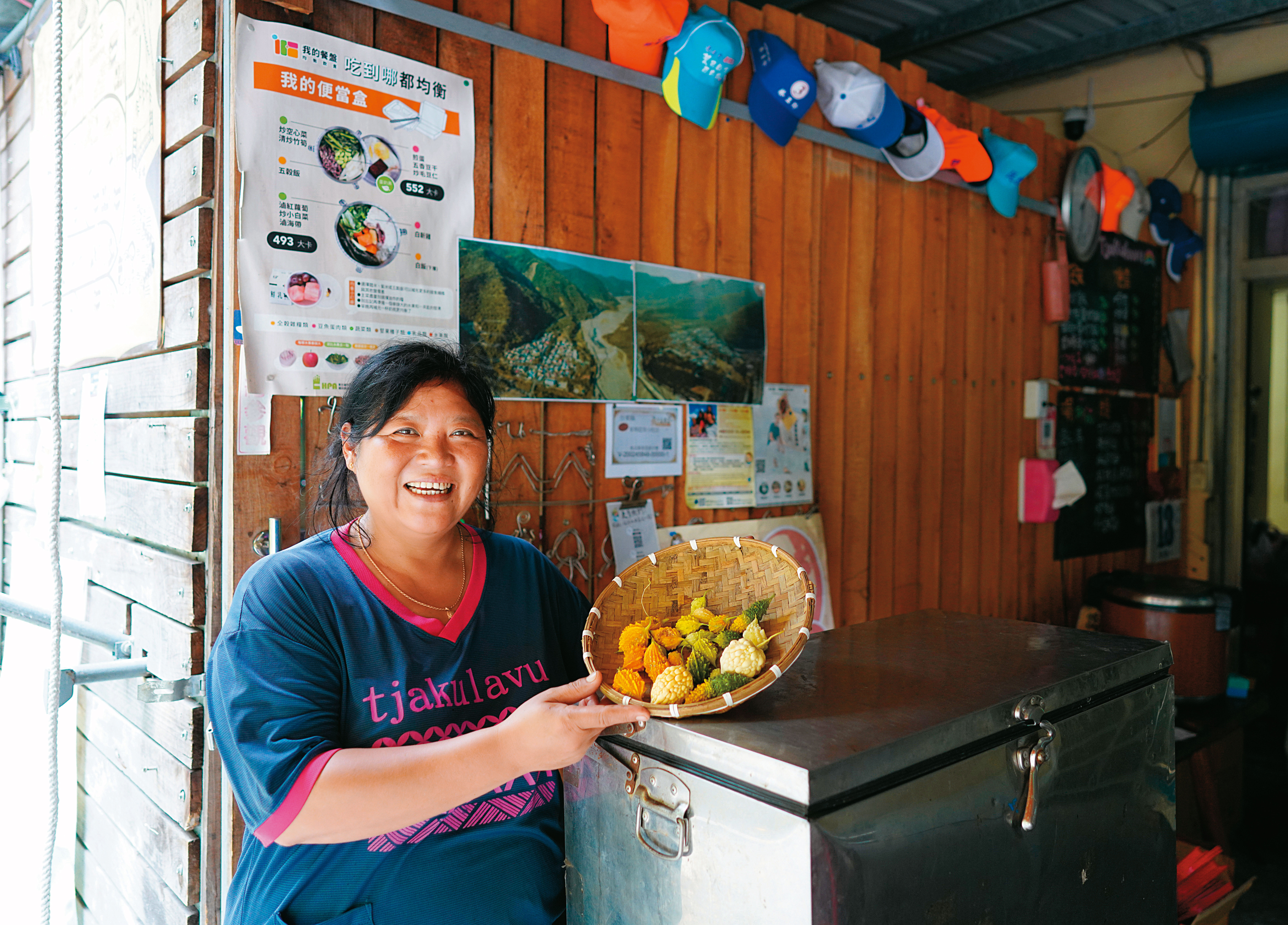 不久,連台東都淪陷,有的族人被隔離,很可憐,我決定做便當送去給他們吃。在部落賺得不多,可是以前最辛苦的時候,我也曾經被幫助過,有個議員幫我申請各種補助,送米、醬油、沙拉油。族人知道我送便當,很多人說要一起出錢,也有人送我各種食材,所以疫情便當其實是大家一起送的。後來我發現部落婦女的織品、農產品常找不到地方賣,乾脆在便當店旁邊的空地設立「中間路市集」,每個月第一個星期六擺攤。部落離大武火車站有一小段距離,人潮不多,但沒關係,我盡我所能。