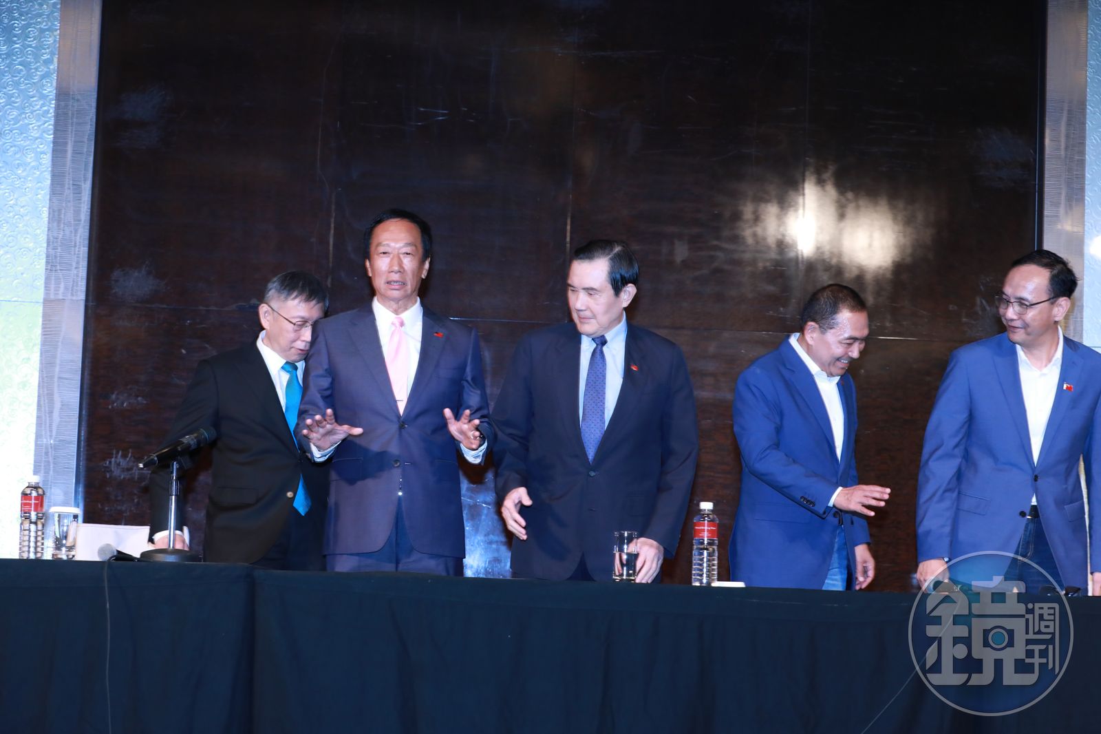 郭柯侯會面多了馬朱兩個「不速之客」,郭柯一度不想見面,隔了15分鐘才現身會議廳,郭台銘稱是當初侯友宜已經答應只有他一個人來赴約,現在卻多了2個重量級的不速之客,飯店來不及預約,沒有辦法準備多的位子。