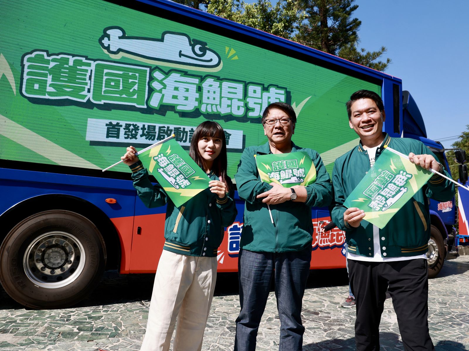 民進黨上午舉行「護國海鯤號」宣傳車啟動記者會,潘孟安、立委參選人李柏毅、立委參選人黃捷、市議員黃文志、市議員李雅慧、劉世芳委員辦公室執行長黃偵琳出席活動,現場民眾高喊「守護台灣、護國有我 」,氣氛熱烈。