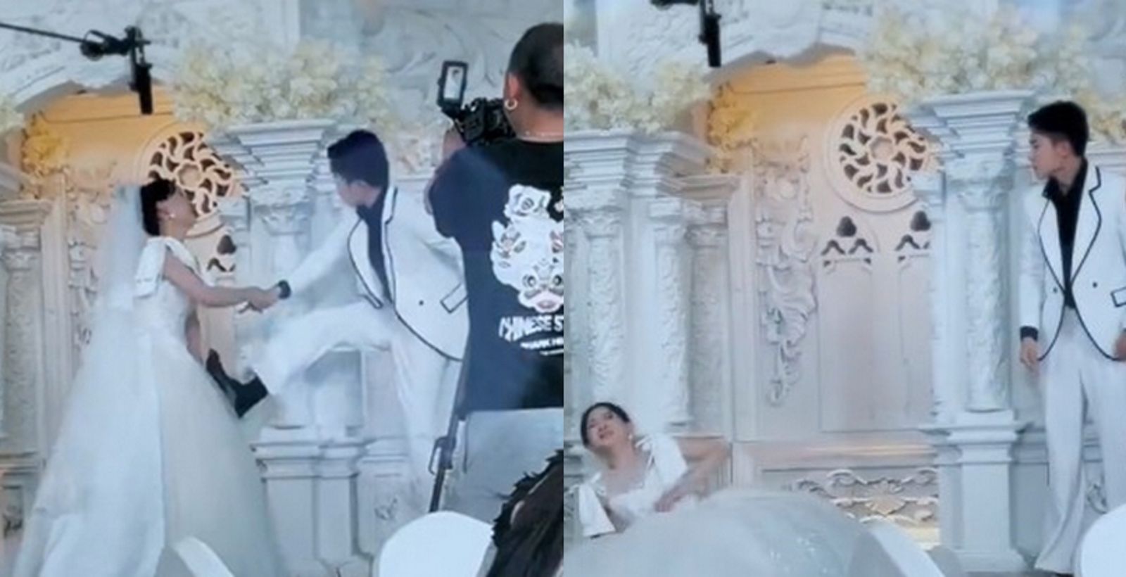 新娘對此辯稱這個小孩確實是新郎的,強調「我打算告訴你這個喜訊,可是沒來得及,從我們相親之後,我們確立了關係,後來才發現我有了,這個孩子是你的,你不要懷疑!」可是新郎聽完卻完全不買單,直言兩人相識一個月就閃婚,小孩根本不可能是他的,氣到一腳踹倒新娘,新娘整個狼狽癱坐在地上。最後新郎當場悔婚,還要求女方全額退還聘金,隨後雙方親友也打了起來,場面十分混亂。