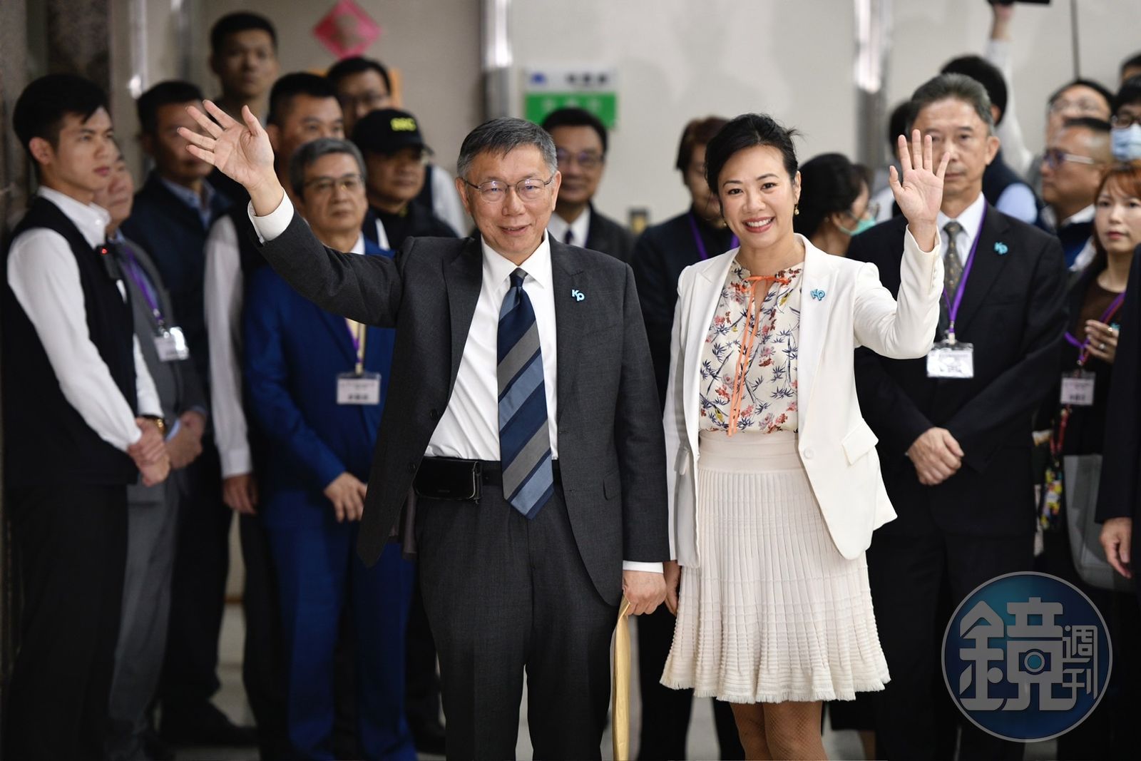 民眾黨總統參選人柯文哲(右),與副手立委吳欣盈24日現身中選會登記參選。(本刊資料照)發布時間:2023.11.27 13:01 臺北時間