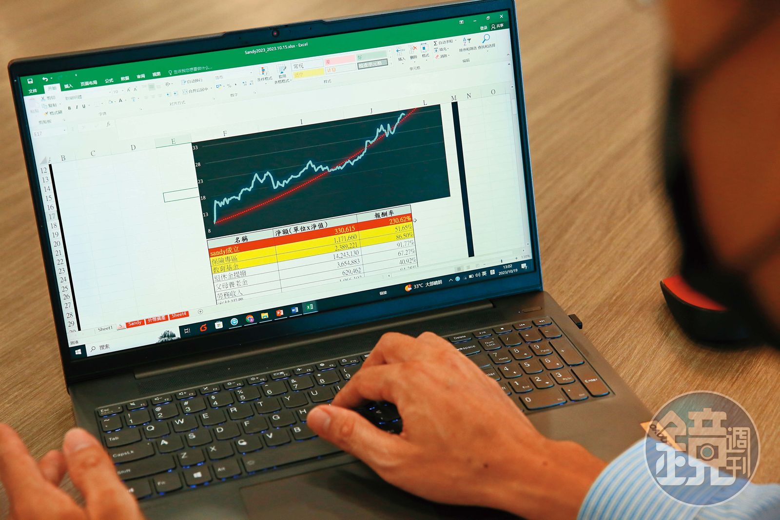 長抱這麼久、成本價僅18元,出脫不可惜嗎?「仁寶是我一張、兩張慢慢買進來的,但價值好股不少,投資觀念正確,就不怕從頭開始養股!」另一主力股聯強,累積至今70張,成本均價35元,今年領到30萬元股息;金融股更是他的主力族群,中信金、第一金、台新金、玉山金累積共300張以上,年領股息超過50萬元。