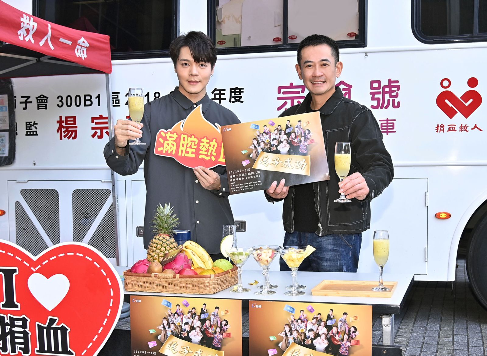 柯叔元、夏天珞兩大男神一站在捐血車旁,立刻引起民眾圍觀,也促進更多人挽袖捐血。現場有民眾剛捐血500c.c,柯叔元立刻送上綠拿鐵,還嘴甜大讚:「人美心更美!」柯叔元難得親自動手製作料理,他透露因為真的太忙,平常不會下廚,笑稱:「我不是在拍戲,就是在拍戲的路上。」
