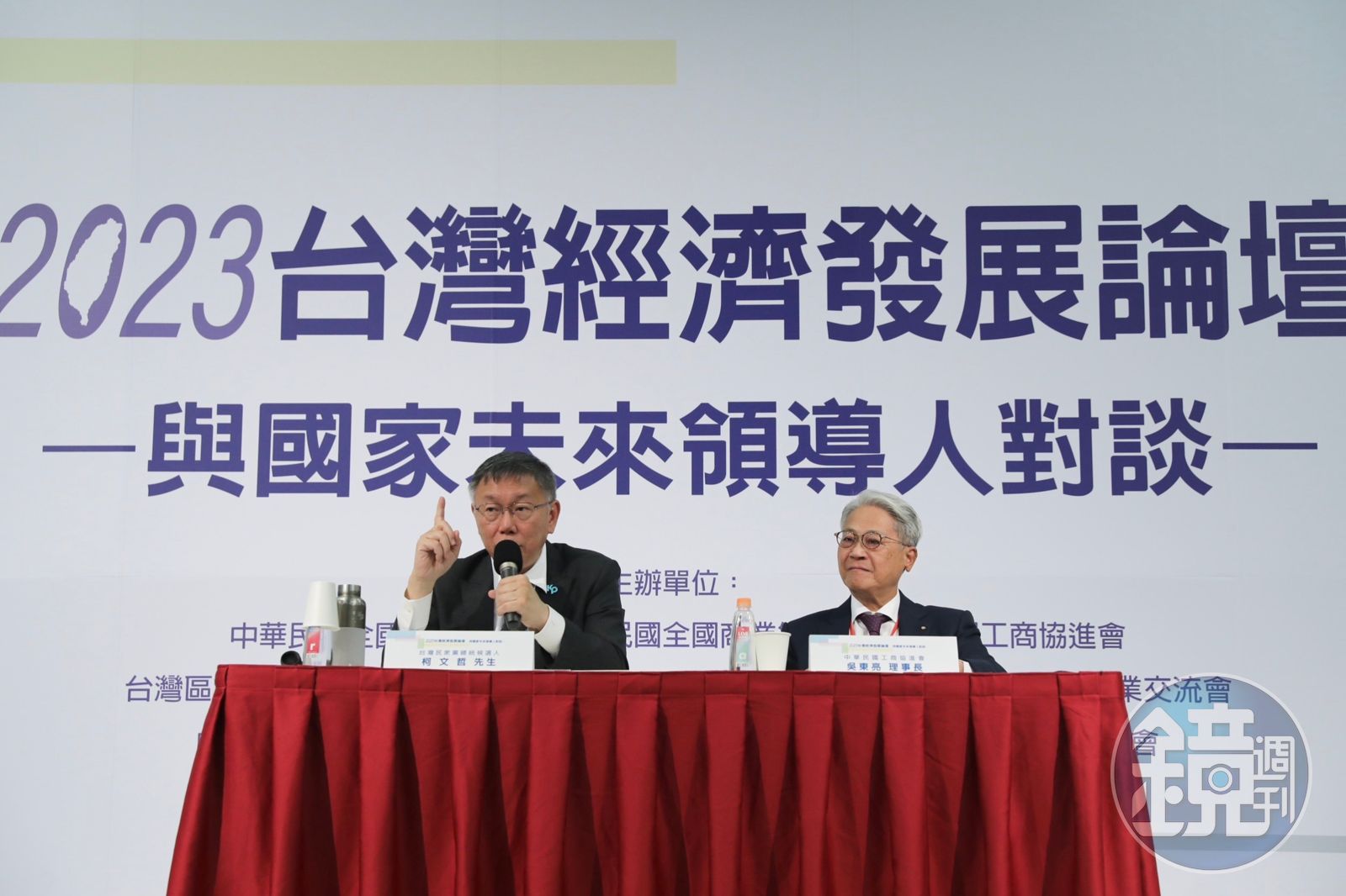 柯文哲今下午受邀出席「2023台灣經濟發展論壇」演講,並與工商界對談,巧的是,論壇主席就是吳欣盈的叔叔吳東亮,吳東亮介紹柯文哲上台演講時,稱呼柯為「我們尊敬的台灣民眾黨總統候選人柯文哲主席」,待柯結束演講及對談環節後,吳結尾發言說:「選舉是很辛苦的,在此祝福柯主席競選過程順利,也高票當選!」讓坐在一旁的柯文哲笑得合不攏嘴。