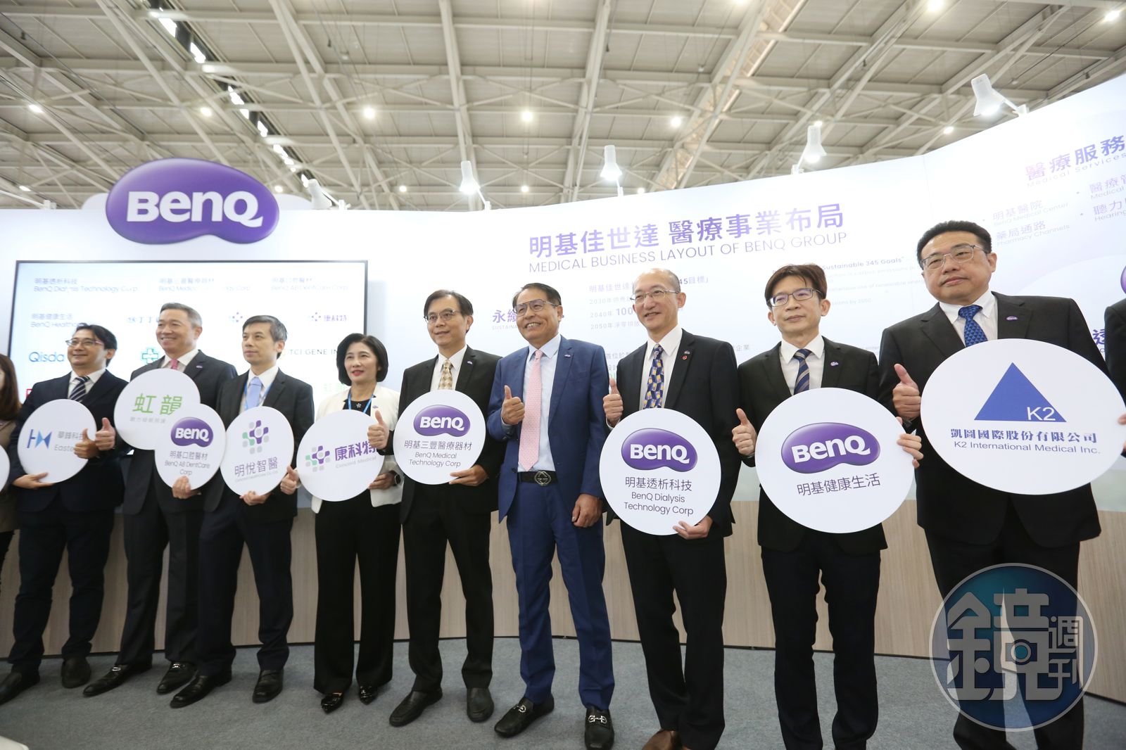 今天南港展覽館一館可說是人聲鼎沸,而在4樓的佳世達展區,佳世達醫療事業群總經理楊宏培率領著明基醫(明基三豐)、明基透析、怡安醫療器材、虹韻助聽器、凱圖國際、康科特、浚鴻、丁丁藥局、大江基因等公司經營高層一字排開,展現醫療大艦隊的氣勢,並逐一介紹各家公司的產品;不單如此,就連新光醫院董事長吳東進也在院長侯勝茂、副院長洪子仁的陪同下,慕名而來參觀佳世達的展區、產品。