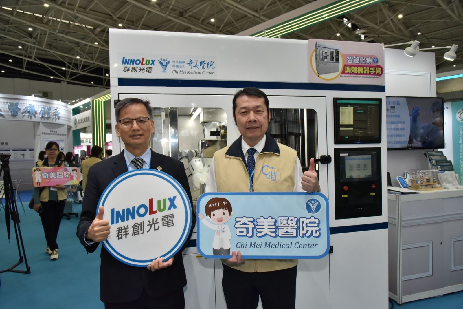 群創光電表示,智能化療調劑機器手臂的硬體設備運用九大模組達到藥品、針筒、軟袋儲放、藥品辨識、抽取藥劑、混合藥液、確認重量等精確調劑;軟體技術利用串接醫院醫囑、同步調配資訊來源、彈性排程調配順序、即時監控調配狀態、自動化記錄調配歷程達到智能調劑,透過調劑大數據,提供化療處方輔助決策,藥品管理最佳化。未來可串連台灣頂尖醫療機構,建置中央自動化調劑製造,輔以冷鏈配送系統,降低藥品浪費,提升偏鄉癌症醫療品質,為智慧醫療體系帶來正面影響,增進人類健康福祉。