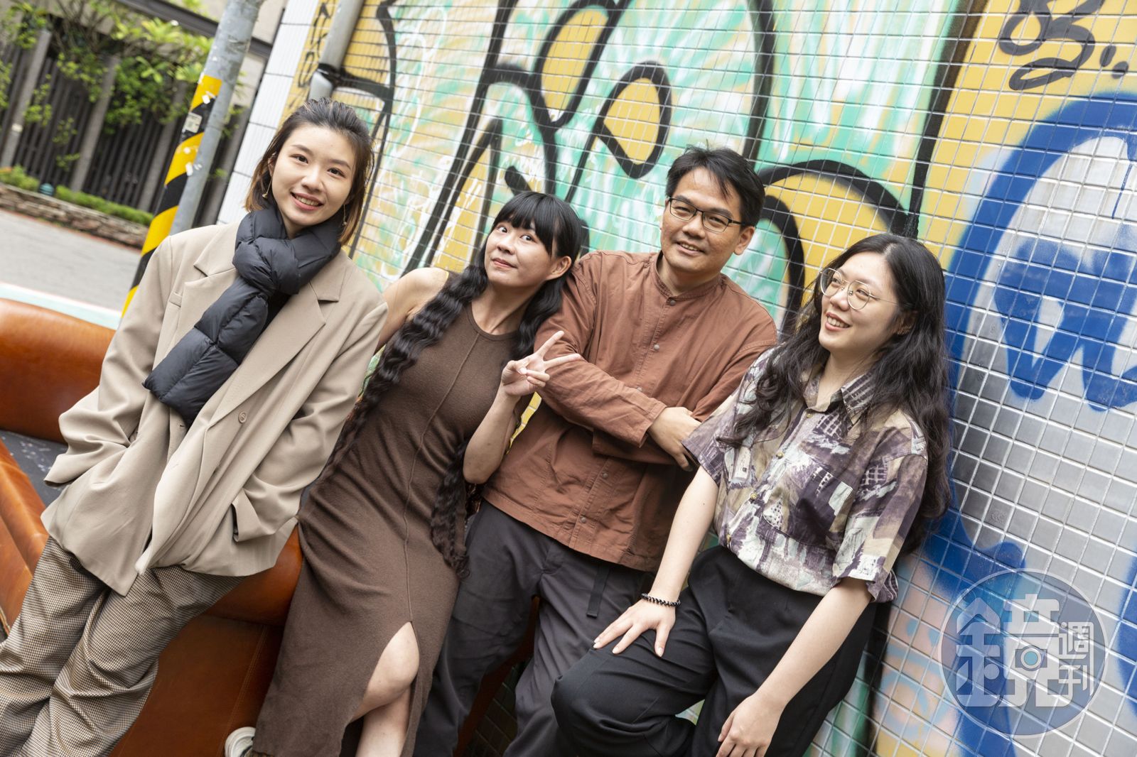 聚場文化執行長周得豪(右2)攜手編劇何安妘(左2)及漫畫家盧琪婷(左1)、Ning Lu(右1)等創作者共同打造《微醺島之味》。發布時間:2023.12.14 05:58 臺北時間