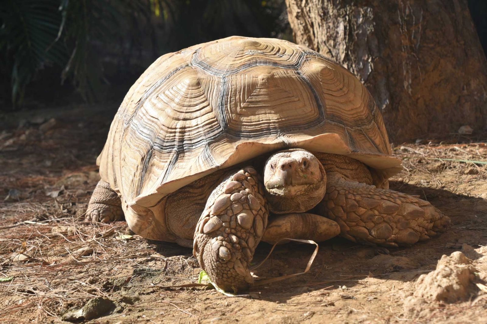 據悉,家住嘉義縣水上鄉中庄村的黃姓男子,平時以飼養蘇卡達象龜為樂,沒想到前幾日他忘記把柵欄關起來,家中的象龜就藉此「逃家」。黃男發現烏龜不見後,趕緊報警請警察協尋,警方調閱監視器,發現有一名老婦人騎機車路過,把象龜撿走,警方遂上門尋龜。