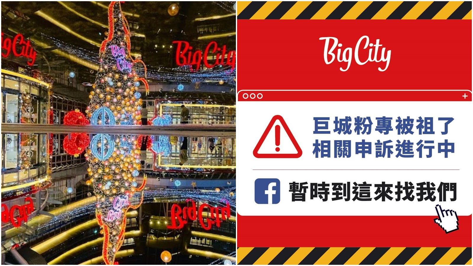 Big City遠東巨城購物中心粉專昨(11日)發文,「慟!12月11日巨城粉專被詐騙粉專惡意檢舉,無預警被Meta刪除。目前申訴進行中,希望能還給我們76萬粉絲。帳號恢復前,請大家先到這裡找我們。」