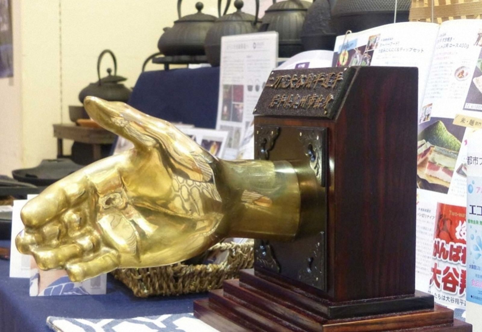 這個天價合約讓大谷在日本有了「千億男」的封號,他的家鄉岩手縣奧州市看準他的吸睛魅力,本月10日至13日在東京東銀座的岩手縣特產店舉辦「奧州二刀流特展」。展覽除了推廣奧州的觀光物產,還展出一座1比1尺寸的「大谷翔平握手模型」,讓民眾可以體驗和「千億男」握手的感覺。