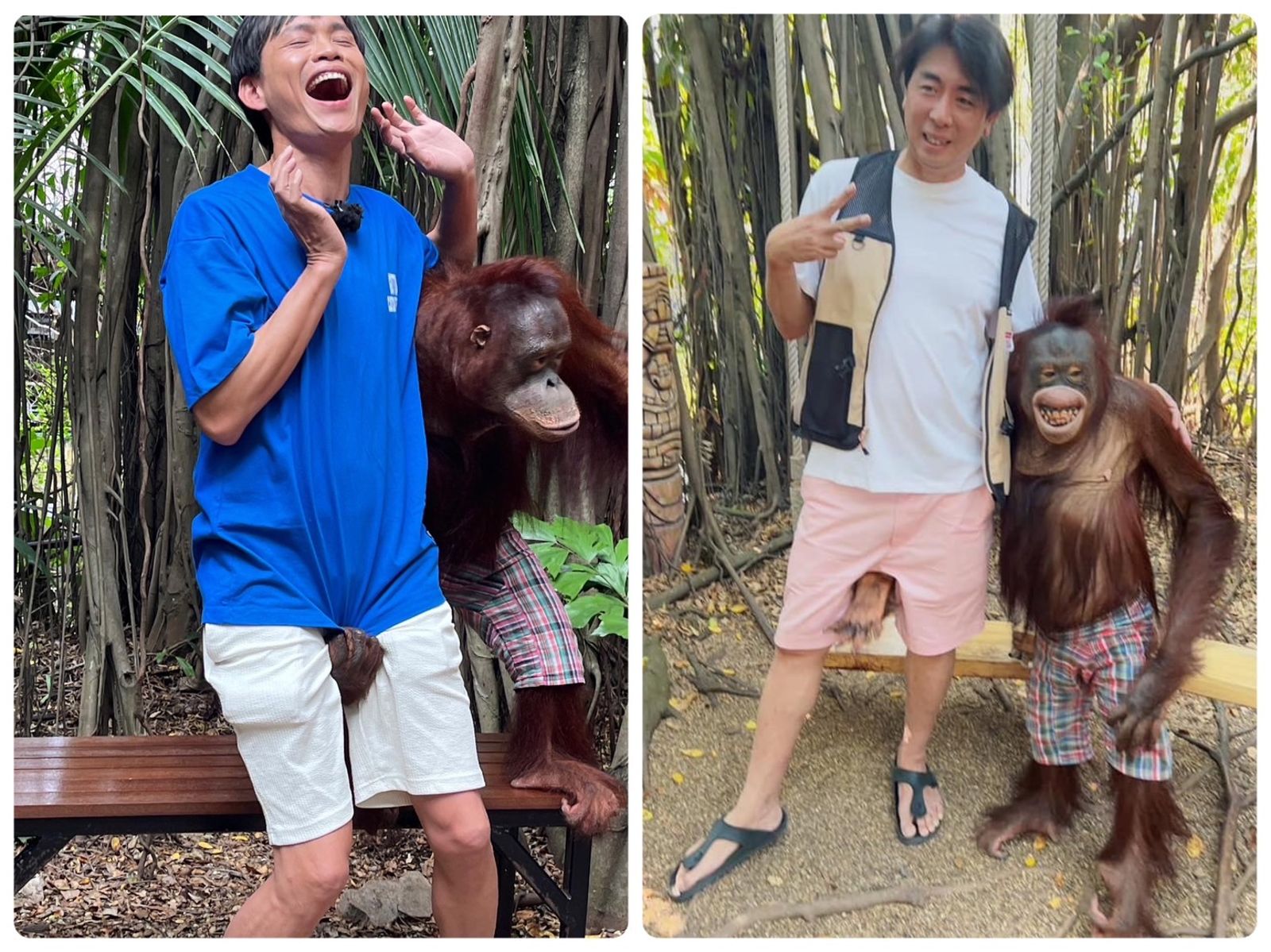 他坦言,被猴子突襲下體一開始還完全被嚇到,猩猩真的「很紮實的抓下去」讓他來不及反應,回國後上傳照片引起網友熱烈回應,主持人梁赫群也在照片下方PO出同樣被「偷桃」的照片,原來梁赫群今年2月也曾和同一隻猩猩合照,遭受同樣待遇,黃鐙輝笑說,原來梁赫群是偷桃界的學長。