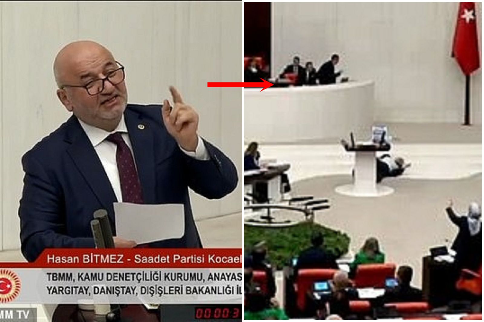 據英國《每日郵報》報導,隸屬薩德特黨(Saadet)的畢梅茲,在12日於國會演說時間,發表對以色列攻打加薩走廊的看法,並闡述自己支持加薩走廊的立場,還咒怨以色列以後勢必會遭到阿拉天譴。不過,當畢梅茲演說完畢的那一刻,他竟然當場倒下,躺在演說台上,讓現場所有議員都嚇了一大跳。