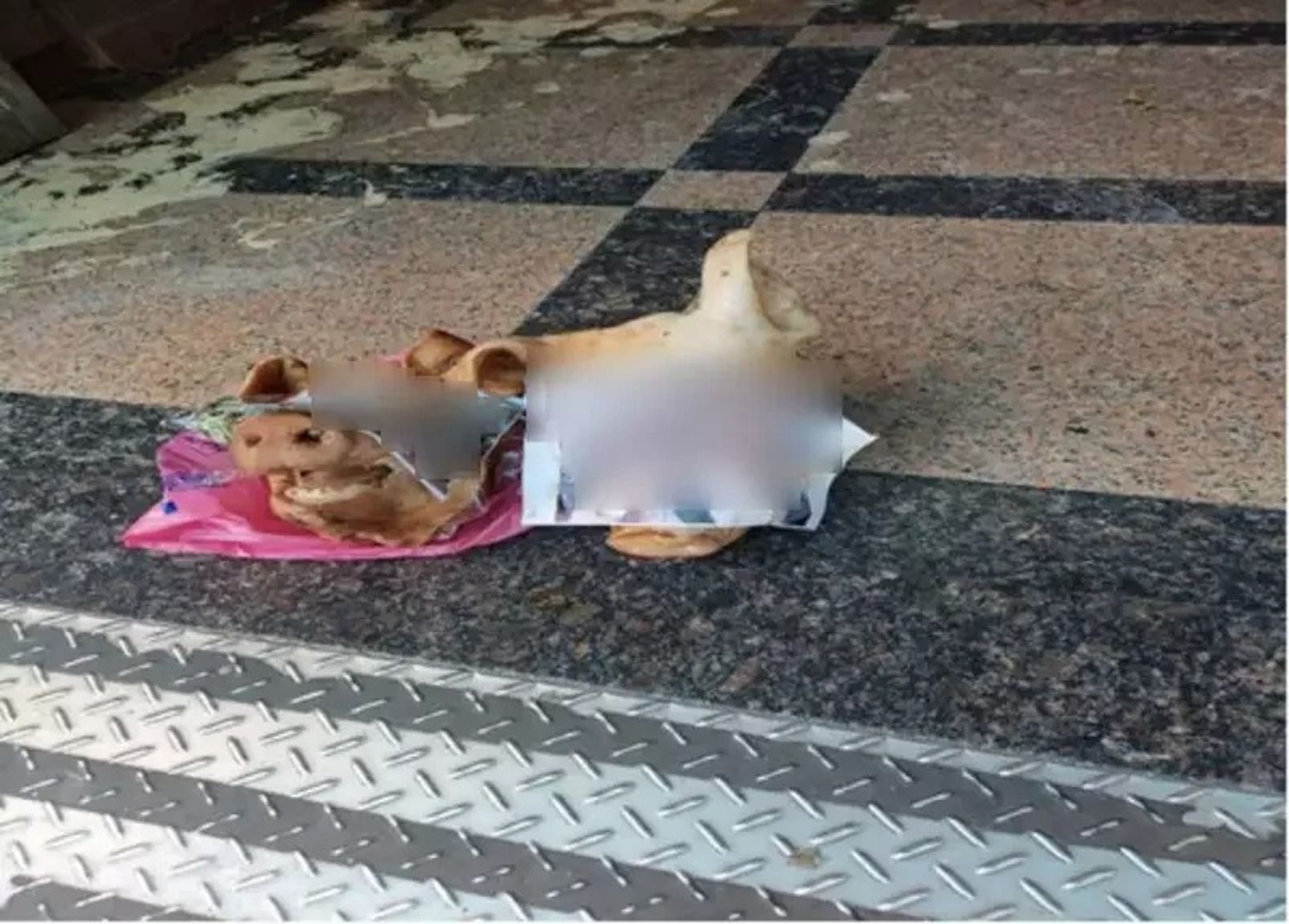 警方指出,林女欠了林男200萬元債務,林男曾在今年6月2度南下討債未果,7月找來4名同伴,再度到林女台中住處討錢。透過監視器影像可以看到,一行人駕駛一輛黑色轎車到林女所住的社區門口,擺2顆豬頭在社區門口,還潑灑惡臭的鯡魚罐頭。此外,豬頭上還貼有林女的照片。