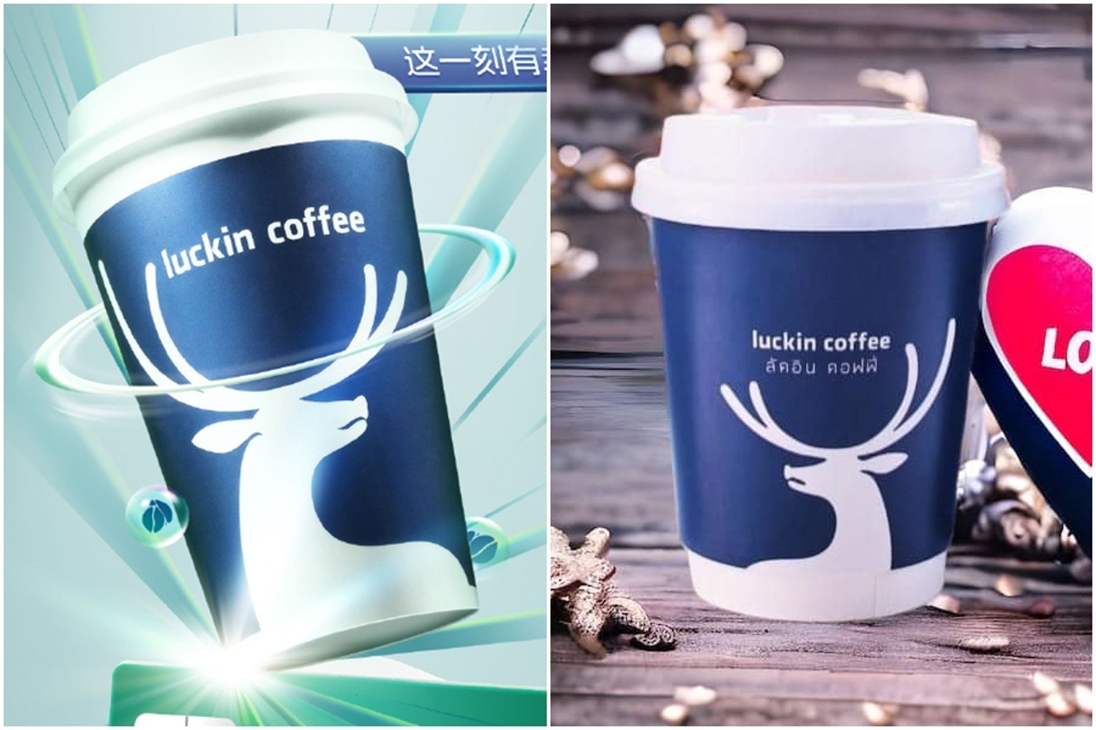 綜合媒體報導,有網友表示早在2022年初就在泰國喝到了瑞幸,除了文案是泰文,其他的視覺設計都和瑞幸極其相似,鹿頭鹿角商標不仔細看很難發現鹿角翻轉了方向,中國的鹿頭是朝右看,泰國的則是朝左看,但英文名稱都是「Luckin Coffee」。