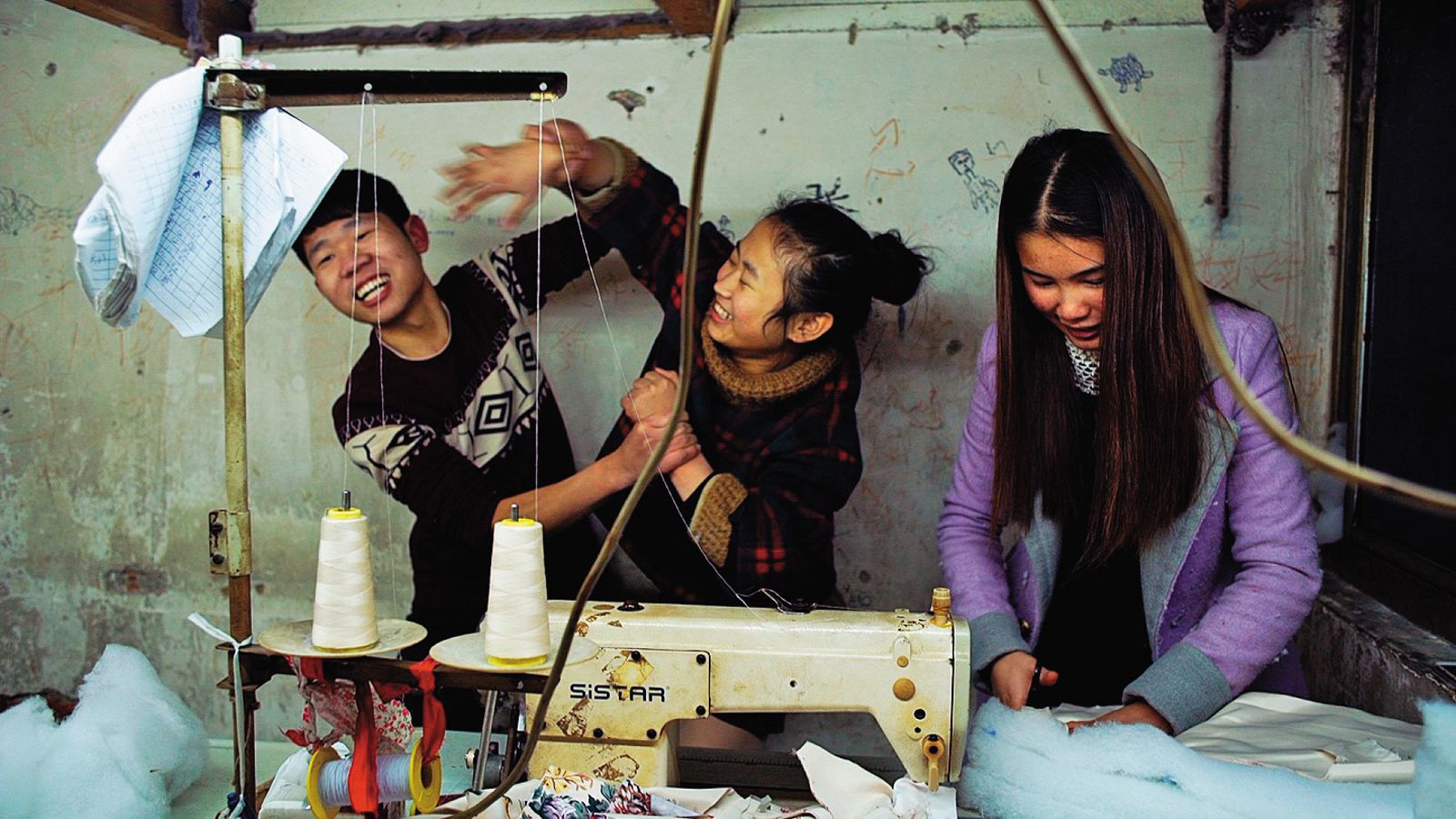 隨著字幕跳出的廠名、人名,我們依稀可見巨大敘事結構中的段落性。片中多是年輕人,他們的體力、速度和熟練,顯然是這份工作最適宜的人選。有男歡女愛、珠胎暗結後的談判分裂;有一言不合,變成刀剪齊飛的衝突場面;有郎有情妹無意的死纏爛打;還有同性之間的man's talk;有人次日得早起,夜裡依然在網吧流連;而怎麼同老闆爭取每件多個幾毛錢工資,則在唯諾與抗爭之間變得矛盾。
