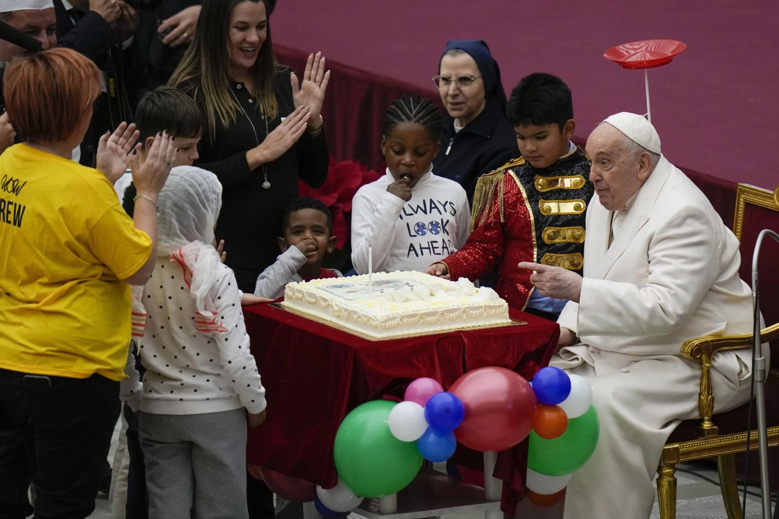 根據《梵諦岡新聞網》報導,教宗17日迎來87歲生日,許多孩童與家長在宗座接見大廳迎接他,孩童們為他唱生日快樂歌、送蛋糕,他也開心吹蠟燭慶生。隨後教宗到聖伯多祿廣場進行每週的例行演說,在廣唱上,當地孩童以義大利語高喊「Buon Compleanno」(生日快樂),並拿慶生標誌,場面溫馨。教宗感謝大家給予他的生日祝福,並敦促基督徒們為即將到來的耶誕節做好準備,迎接耶穌的降生。