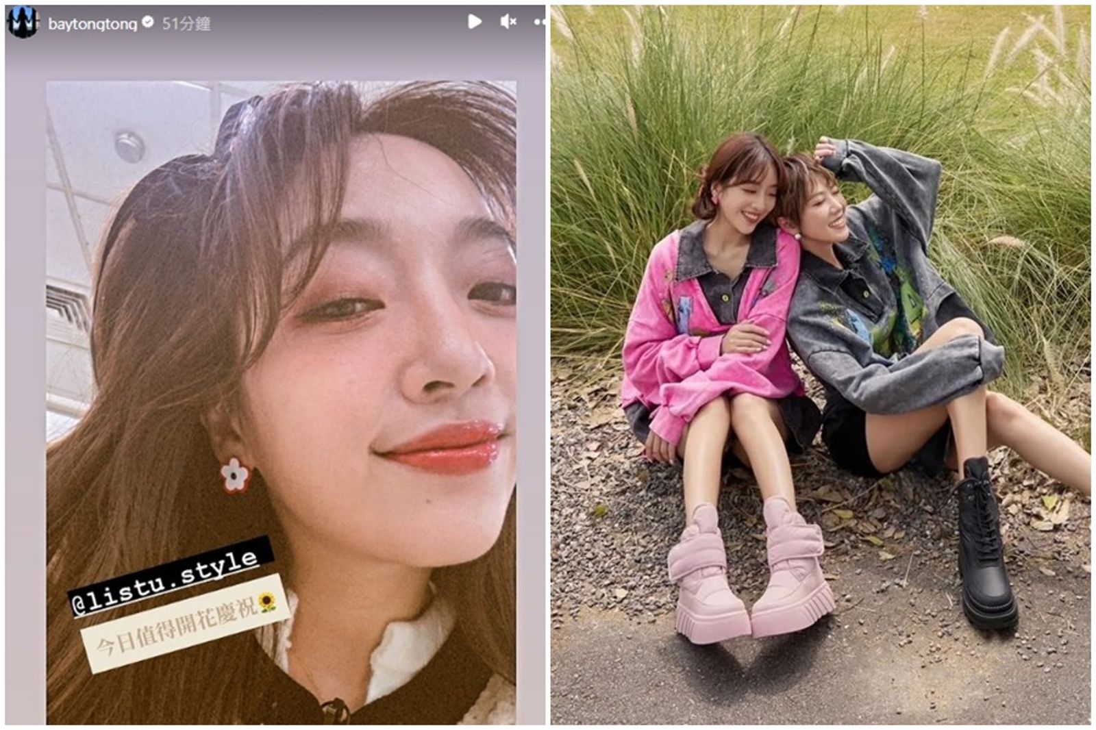 貝童彤與大牙同為《黑澀會》出道,身為好友的她,得知今偵結結果後,隨即在IG限時動態上,曬出微笑照並TAG大牙經營的品牌,「今天值得開花慶祝。」似乎為大牙不被起訴一事感到開心。