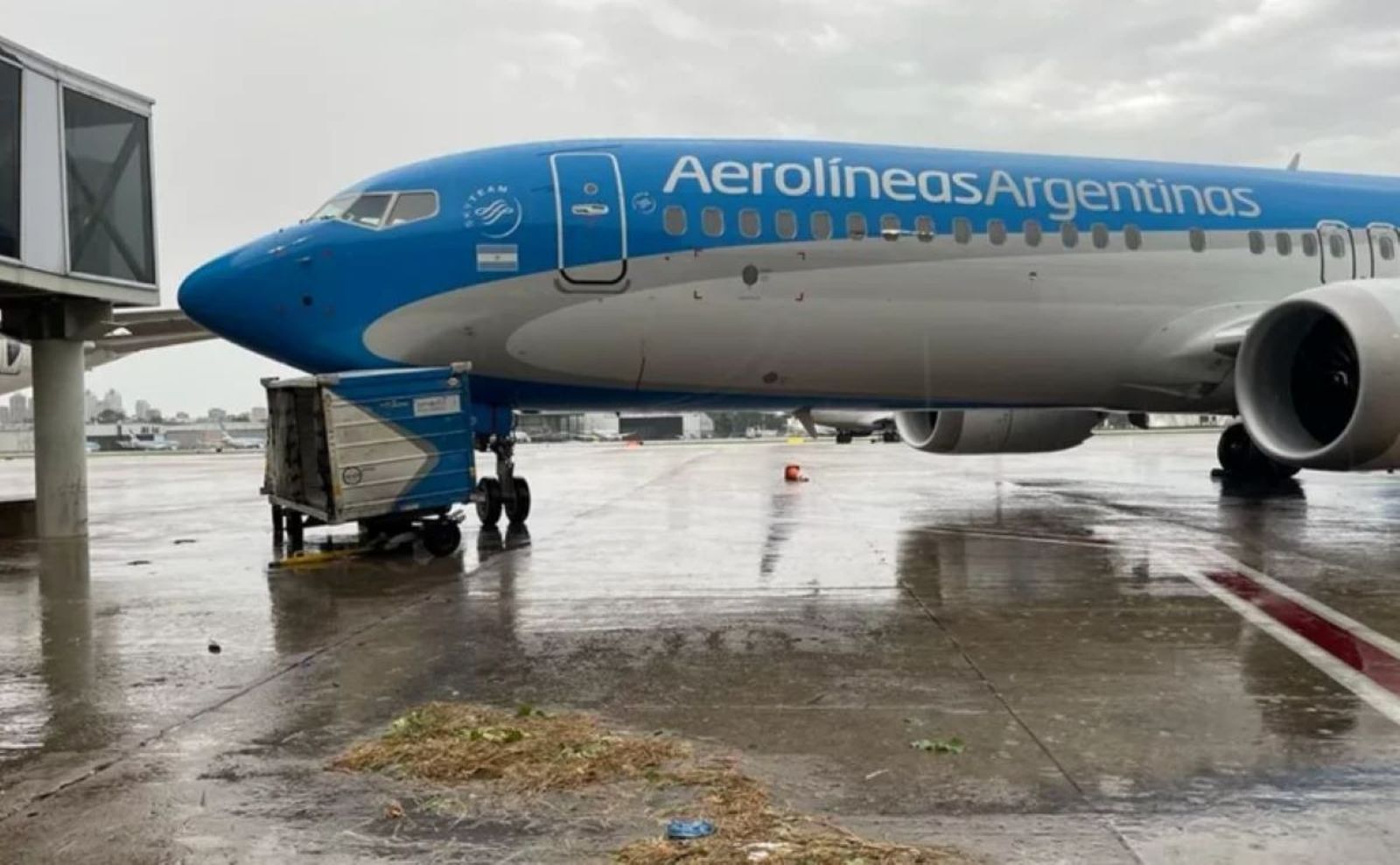 據英國《每日郵報》報導,就在17日這天,風暴持續肆虐,一架停在荷西紐貝瑞機場(Aeroparque Jorge Newbery)的阿根廷航空班機,瞬間變成「無人駕駛」自己滑行,還會「自動轉頭」。另外還有登機梯也受強風影響,一路自動「快速滑壘」,直到撞到停在旁邊的空貨櫃與轉運車才停下。