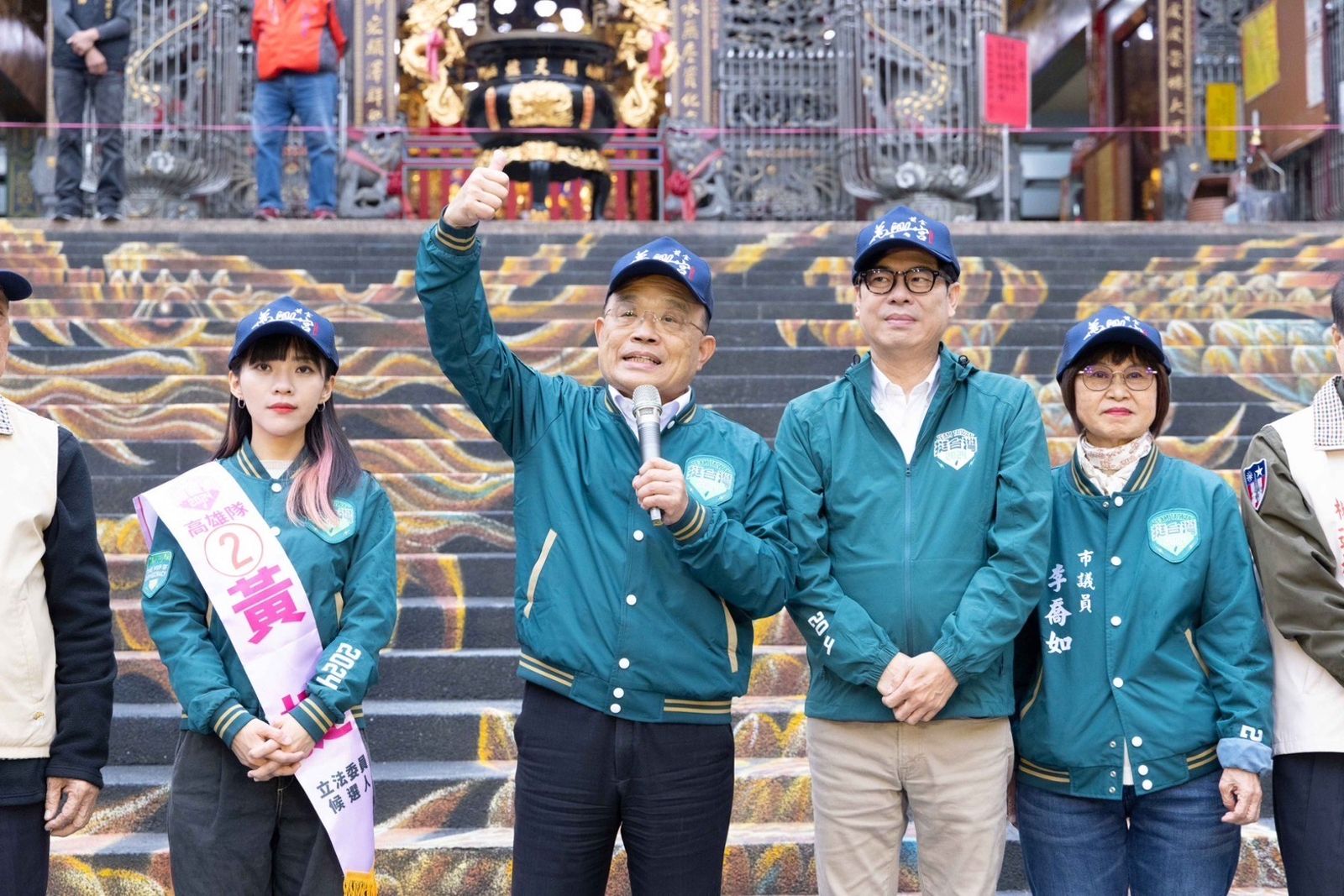 前行政院長蘇貞昌、高雄市長陳其邁23日陪同高雄第六選區立委候選人黃捷,至前金區萬興宮參拜,與在地民眾於廟口前開講,蘇貞昌大讚黃捷有遠見、肯發聲,選擇黃捷一定讓台灣與高雄大進步。