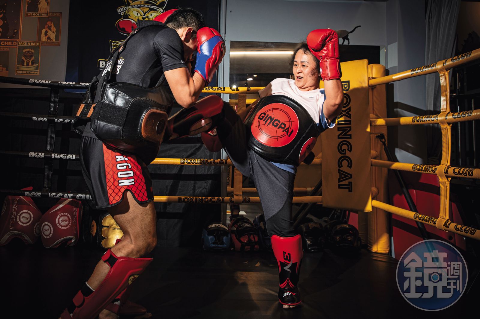 教練除了教重訓,也教泰拳,有次問我要不要試試看?他穿護具讓我打。既然他不怕我打他,我有什麼好怕?打完回家,我不痛也沒受傷,心情還比較放鬆。我慢慢愛上打拳,打了2、3年,體重從70幾公斤降到60幾,血壓、血脂也變正常,不用再吃藥。