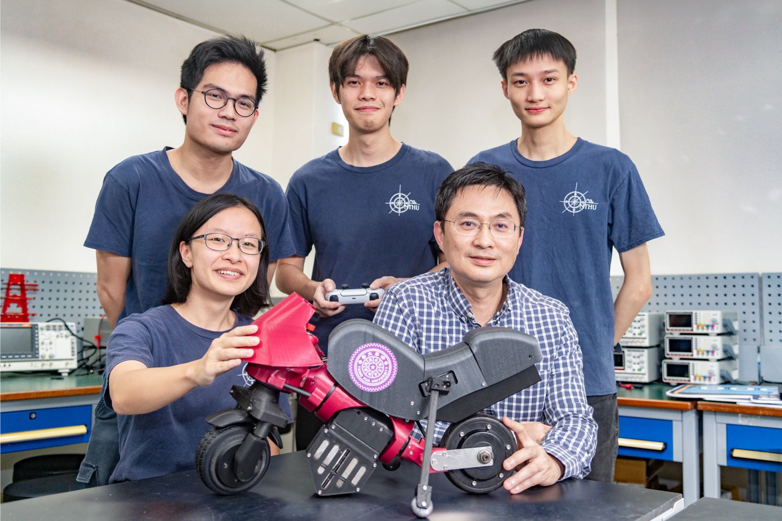 令人難以相信的是,這是一門清華大學動機系大學部專題研究課程的成果。陳昱棻、彭震祐、李威杉、戴雍4位大四生利用兩個學期的時間,從無到有,以3D列印的碳纖尼龍及塑膠零件打造出迷你版的自動平衡摩托車模型,朝「AI幫你騎車」的夢想再進一步。