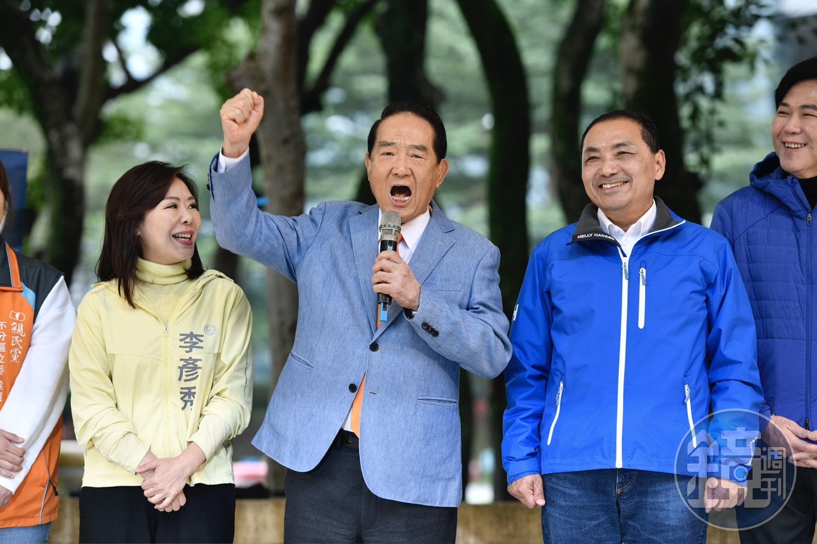 宋楚瑜說也列舉許多市政問題,並肯定侯友宜把「人民的小事,當作國家的大事」。他回憶,蔣經國曾經說過「哇系台灣人,也是中國人」,希望未來能夠跨黨派合作,一起為兩岸共同創造輝煌,繁榮的未來。「一張票,一世情」,希望大家政黨票,可以投給14號做實事的親民黨。