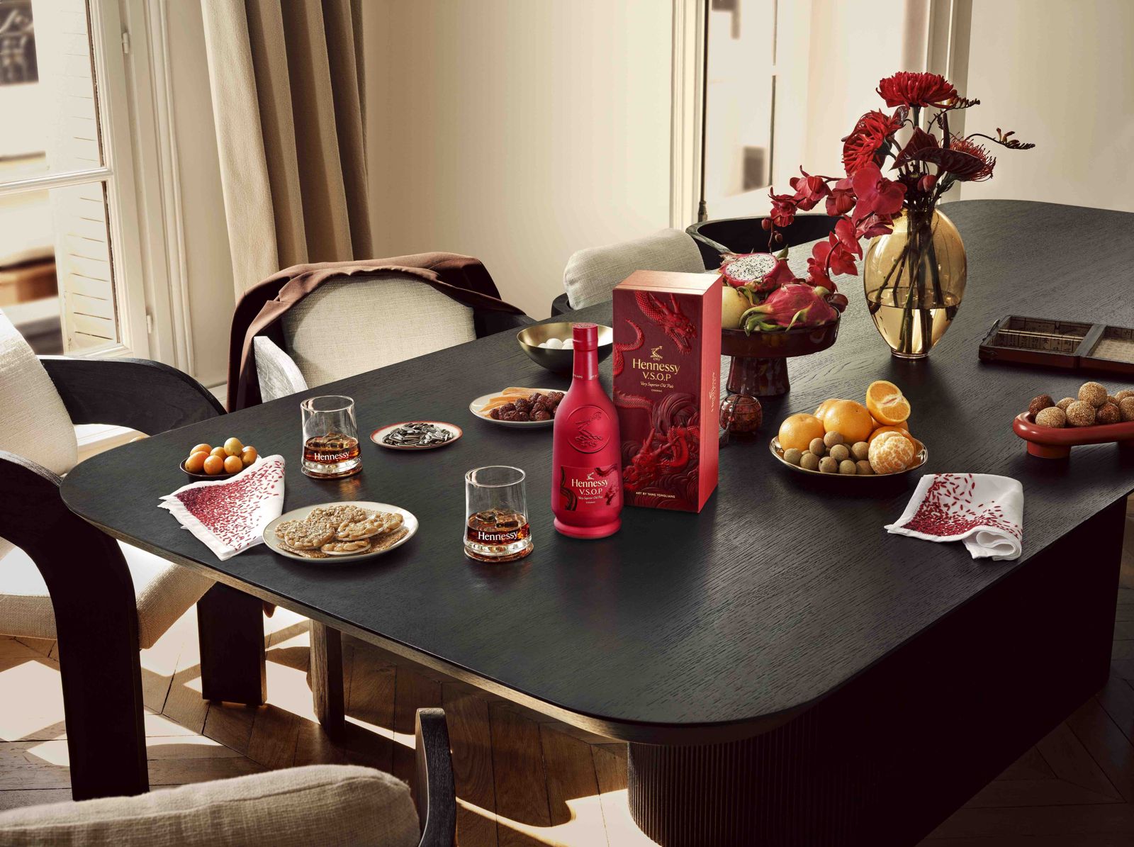 軒尼詩2024春節限量版系列圍繞著「龍聚吉,創新局」的精神;詮釋出迎面而來吉祥的一年,齊聚慶祝,打開突破而創新的未來。由藝術家楊泳梁親自設計的包裝有軒尼詩V.S.O.P、軒尼詩X.O和軒尼詩百樂廷三款佳釀。軒尼詩V.S.O.P的紅色象徵喜悅和好運;軒尼詩X.O禮盒的金色代表繁榮昌盛;軒尼詩百樂廷更是以精緻罕見的工藝手法打造出的藝術限量裝瓶,盛裝在奢華的訂製橡木禮盒中,為新的一年傳遞出充滿力道、一觸即發的龍躍之美。
