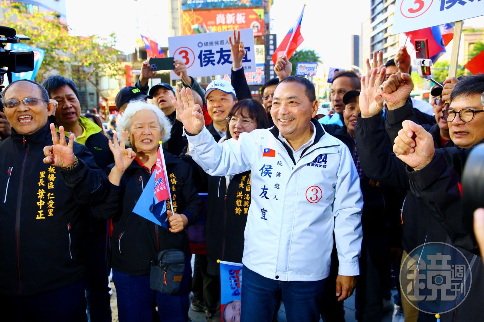 侯友宜今(2日)在新北市板橋區與國民黨立委候選人一起掃街拜票,回防本命區。